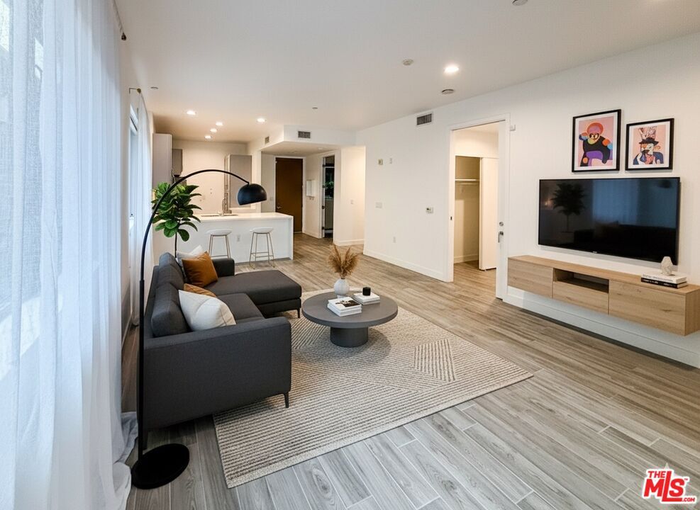 Located in the heart of H-O-L-L-Y-W-O-O-D - a place of ambition, success and glamour, this immaculate condo with large private patio has everything you're looking for! Walk-in and fall in love with an open layout that flows seamlessly from the fully equipped kitchen and dining area through the living room to the outdoor patio, which provides direct access to the street. This modern kitchen comes complete with stainless steel appliances and has ample cabinet and cupboard space for storage. The condo features high ceilings, recessed lighting, central AC/heat, brand new flooring, and in-unit washer and dryer. This corner unit boasts abundant natural light, from windows on three sides, making the home bright and spacious. The primary suite overlooks your own private outdoor patio and it has a large ensuite bath with dual vanity & soaking tub. This recently built condominium complex with architectural flair, offers a fitness center, has an inviting lobby and provides abundant guest parking. MLS# 26652279