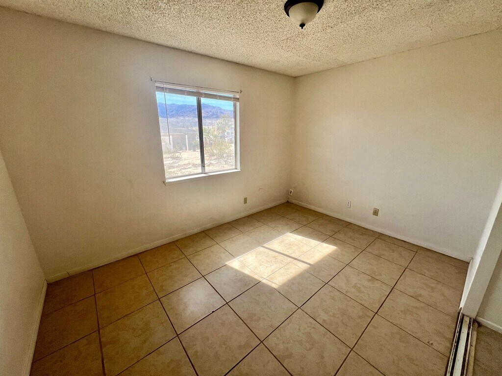 For Rent: Charming 3-Bedroom Home in 29 Palms Welcome to 6001 Mariposa Ave., a spacious three-bedroom, two-bath home located in the Chocolate Drop neighborhood of 29 Palms. This home is conveniently close to the Marine Base, Tortoise Rock Casino, and Joshua Tree National Park. With a vintage desert vibe and easy-to-maintain porcelain tile flooring throughout, this property offers both comfort and convenience. The kitchen is well-equipped with a gas oven, washer, electric dryer, and a countertop dishwasher for added ease. The living room is generously sized, providing plenty of space for relaxation. The home includes both a central HVAC system and a swamp cooler, ensuring year-round comfort. A hallway coat closet and additional storage provide extra functionality. The primary bedroom features an en suite bathroom and a wall-to-wall closet for ample storage. The two additional bedrooms are well-sized, and the guest bathroom includes a full tub and shower enclosure. This home is a great opportunity for those looking for a well-located rental with plenty of space and modern conveniences. Contact today to schedule a tour!