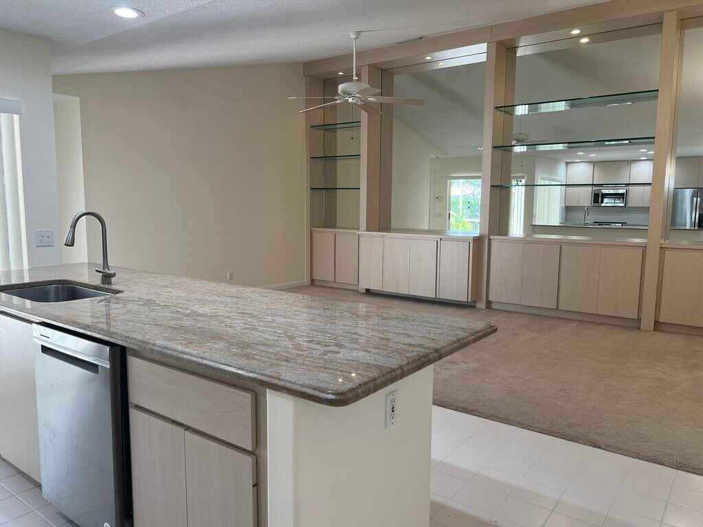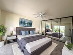 Pristine newly painted & well maintained single level 2 bedroom, 2 bathroom townhome offers open living/dining areas, soaring ceilings, custom shelving, mirrors, & elegant finishes throughout. The recently updated kitchen is a chef's delight, featuring BRAND NEW appliances, marble countertops, and abundant storage space. Both spacious bedrooms offer easy access and include their own full bathrooms, providing comfort and privacy. Step outside onto the oversized screened-in patio ideal for relaxing or entertaining. Enjoy access to the community pool, senic tree-lined walking paths, & tranquil lakes. Sunterrace is located just minutes from the upscale Gardens Mall, fine dining, pristine beaches, & major highways. This home is the perfect blend of serenity and convenience. See for yourself
