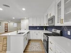 Newly renovated 4-bed, 2-bath, 2-car, home in a prime location of The River District! NEW ROOF, NEW HVAC, NEW WATER HEATER, Move-in ready and tons of brand-new features, NEW fresh paint, NEW floating floors throughout, NEW LED lighting, NEW windows that flood the space with natural light as well as updated bathrooms. The modern kitchen boasts NEW granite top, gold accents, NEW sleek custom cabinetry, and a stunning navy-blue herringbone backsplash. Updated bathrooms offer contemporary finishes with a modern paint scheme and trendy tile. Enjoy a spacious walk-in pantry with accent tile, full-size laundry room, two-car garage, large walk-in shed with power, backyard patio to entertain, grill and spend time with your loved ones. Conveniently located near 7th street, River District, Downtown Fort Worth, highways, local eateries, and Lockheed Martin, this home offers easy access with a charming small-town feel.