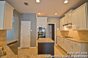 Welcome to your dream home in the heart of Alamo Ranch. This immaculately maintained home offers 2900 sq ft of thoughtfully designed living spaces. It includes 4 bedrooms, with the master suite located on the first floor, an office that boasts a lovely view and a media room. This move-in ready smart home is equipped with smart lighting, phone-controlled doors, smart thermostat and five security cameras. Additional highlights include a water softener, fresh paint, no carpeting, backs up to a greenbelt.