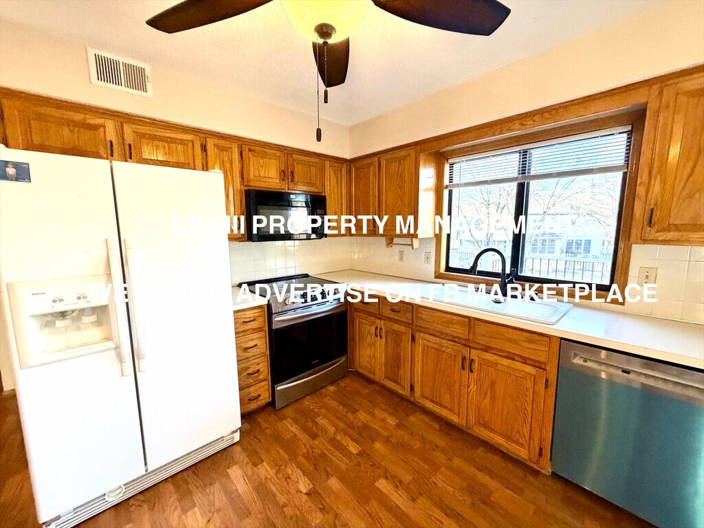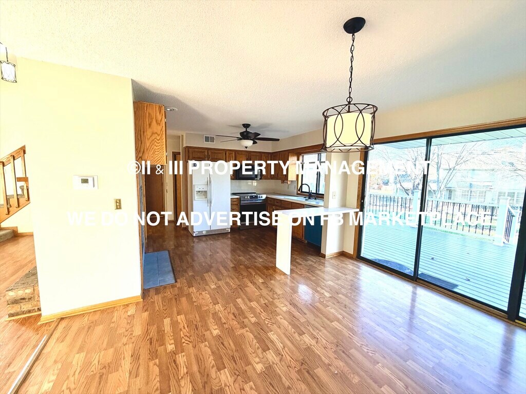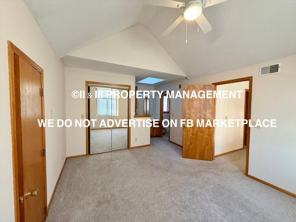Sylvan Lake home! 3BR 3.5BA home. Bright family room with vaulted ceilings and see through gas fireplace. Large eat in kitchen with access to the backyard. Space for table please counter top eating area. Stainless steel range and dishwasher. Primary suite has 2 walk in closets, double sinks, vaulted ceiling with ceiling fan and shower. 2 additional bedrooms and second full bath located on the top floor. Finished basement with third full bathroom. Great neighborhood with short walk to Stanley Elementary and Blue Valley High. Pets welcome with a $500 non refundable pet fee and an additional $25/mo per pet.