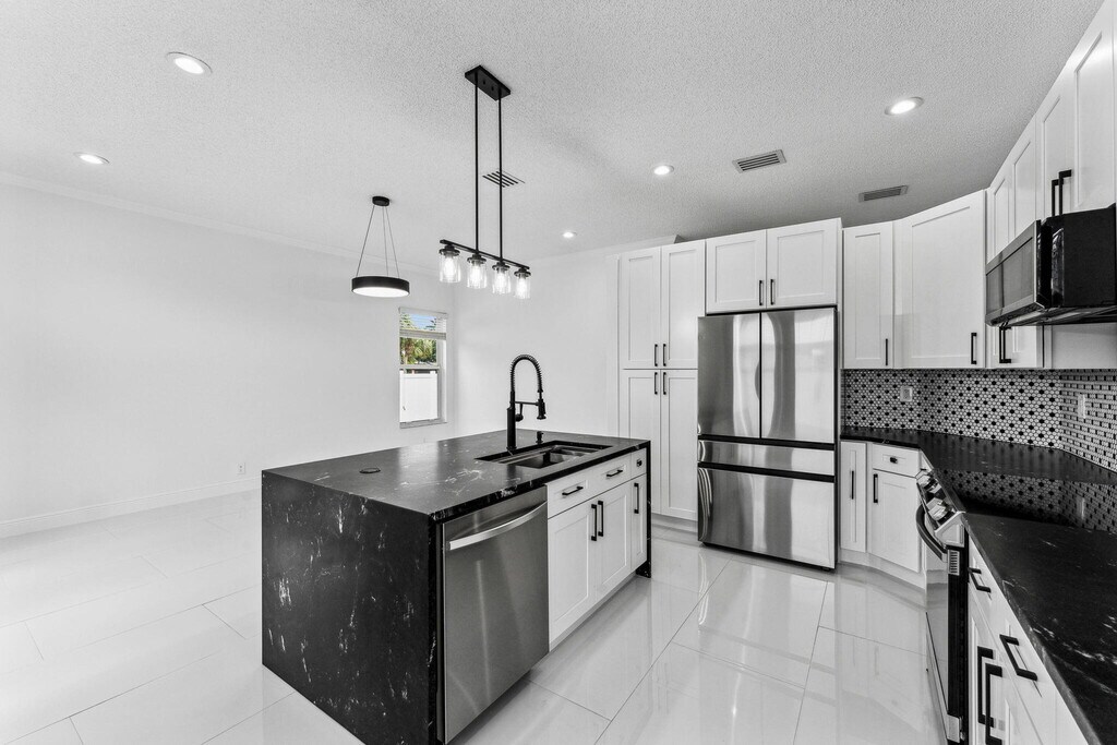 Discover this beautifully remodeled 4 bedrooms, 2 bath, 2 car garage, pool home where no detail has been spared. Featuring a fully renovated kitchen, new appliances, new floors, impact hurricane windows, updated bathrooms, and brand new roof this home offers modern elegance and safety. The spacious fully fenced in backyard boasts a newly refinished pool and artificial grass, perfect for leisure and entertaining. Located in the highly desirable gated community of Winston Trails, with loads of amenities you will also benefit from A-rated schools and close proximity to shopping and dining. Truly, there is no better place to call home. Lawn care and pool service included in the rent.