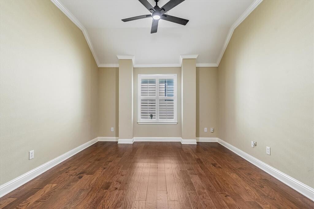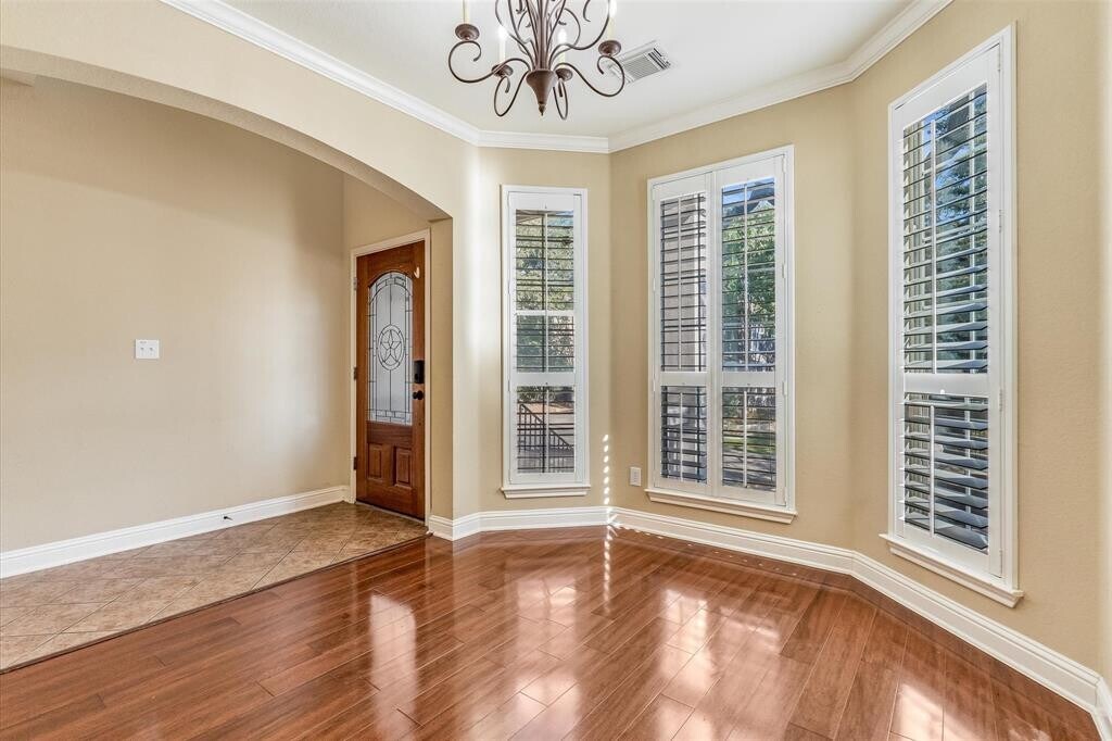 This spacious and sophisticated house in Austin's hottest zip code offers multiple living and dining areas and a great open feel. The primay bath features a double vanity, separate tub, and a frameless walk in shower. Beautiful wood floors flow throughout all of the living areas and bedrooms. Tenants will additionally enjoy an upstairs terrace and large back yard with a new deck and fence. Other features include: separate laundry room, two car garage, gas stove, stainless steel appliances, and under-cabinet lighting in the kitchen.