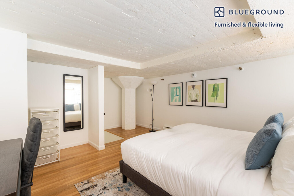 Feel at home wherever you choose to live with Blueground. You’ll love this charming China Basin furnished one bedroom loft with its modern decor, fully equipped kitchen, and beautiful living room. Ideally located, you’re close to all the best that San Francisco has to offer! (ID #SFO1523) The advertised rate of $5,530/month is the lowest available price, based on a 12 month(s) stay with a move-in date of April 17, 2026. Rates vary depending on the duration of stay, season, and other parameters. For exact pricing and additional pricing components, please visit our website and enter your desired move-in and move-out dates. The rate is applicable when billed upfront; it can be higher if billed in multiple payments. Brokers are welcome to reach out. Were you looking for an unfurnished lease? Try Blueground instead and upgrade from unfurnished to furnished living: - Furnished at rates comparable to unfurnished - No setup or furniture costs - save thousands - Move-in ready - save time, just bring your suitcase Designed with you in mind As with any Blueground loft, you’ll find a thoughtfully designed space complete with beautiful furniture and a fully equipped kitchen in this one bedroom property. And, thanks to our superior quality mattresses, luxury linens, and towels, you can relax knowing you’ll always feel comfortably at home. When you’re ready for some fun, you can take in the San Francisco vibes or bring the entertainment to you with the premium wireless speaker or smart TV. This loft also offers in-loft laundry. Sleeping arrangements King Bed, 70.8in/180cm Amenities Building amenities unique to this one bedroom loft include an on-site: - Dryer - Washing machine - Pets allowed Arrival and ongoing support The entire loft is yours to enjoy! Throughout your stay, you’ll have access to our Client Experience team through the Blueground App. You can schedule additional cleanings, submit maintenance requests, and view our neighborhood recommendations with just a few taps. We’ll share all details upon confirmation of your stay. Other things to note This Blueground loft has flexible lease options, allowing you to book it for one month, a year, or more. Pets are welcome, though weight limits and breed restrictions apply and may incur fees. Please keep in mind that this is a walk up building. We take great pride in ensuring every photo displayed is shot in our own units with our actual furnishings. That said, we regularly refresh our decor and furniture arrangement, which may differ from what’s pictured. Also note - There are stairs leading up to the entrance of this apartment, but no elevator [SI]