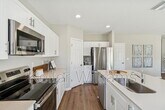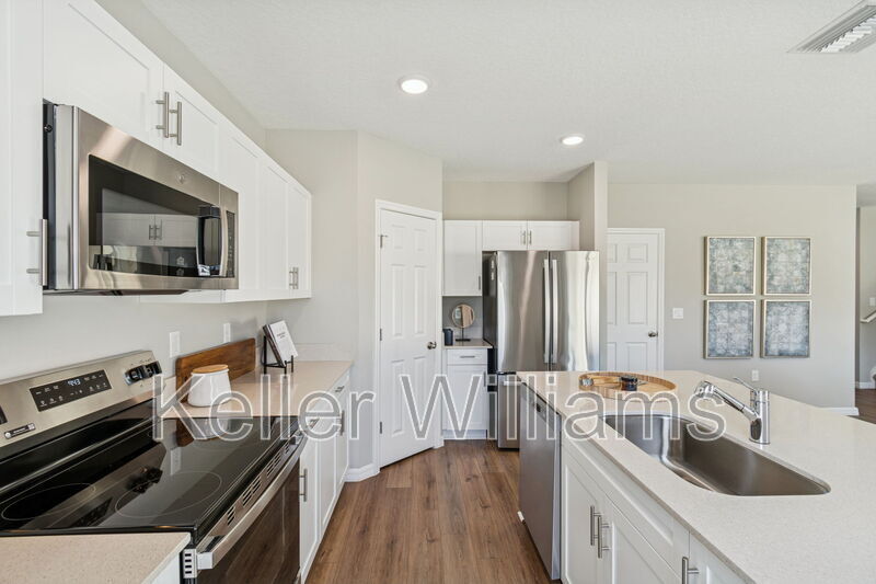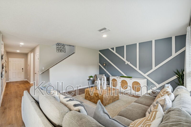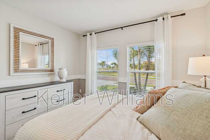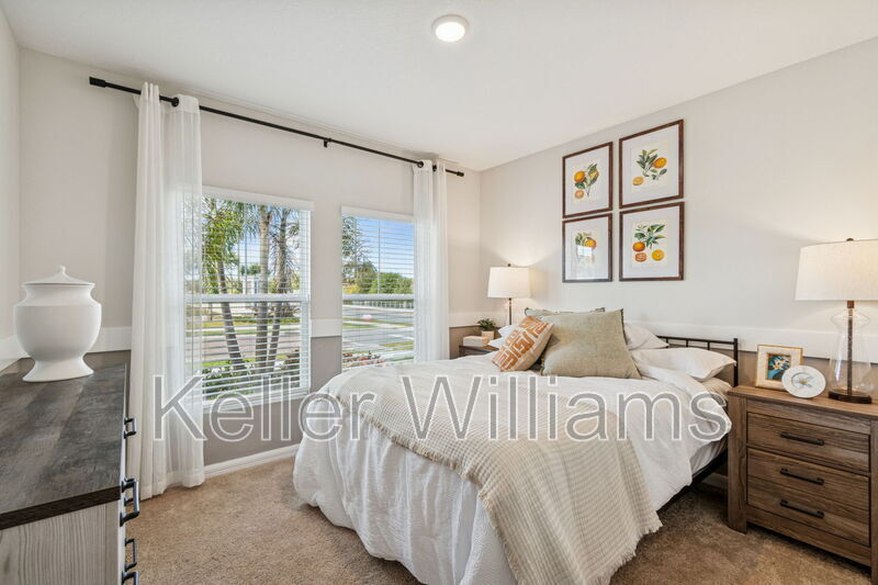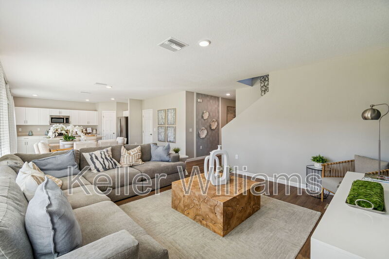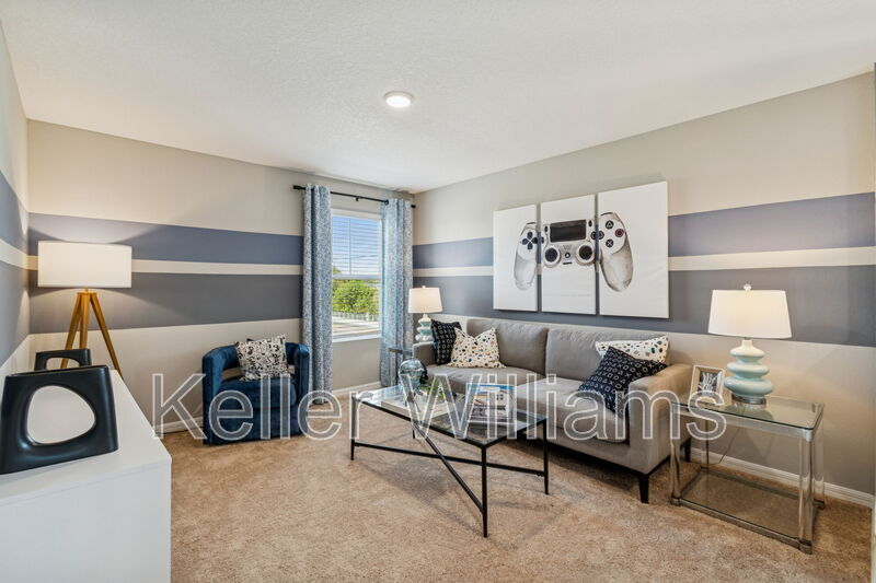 Have you ever wanted to live in a professionally decorated new construction model home? Now is your chance! This stunning 5-bedroom, 3-bathroom furnished home is available for rent in the sought-after Bradbury Creek community in Haines City. This absolutely stunning home features quartz countertops throughout, stainless-steel appliances, and a smart thermostat for energy-efficient climate control. Luxury vinyl flooring complements the open-concept living space, perfect for entertaining. The downstairs guest suite and full bath are thoughtfully tucked away for added privacy. Upstairs, enjoy a spacious recreation area ideal for family time or relaxing. The owner's suite is a true retreat, offering a walk-in shower, double vanities, and a generous walk-in closet. The laundry room with brand-new washer and dryer is conveniently located just outside the owner's suite, near the additional three bedrooms and full bathroom.Fenced backyard, covered rear porch, and 2-car garage. Community amenities include resort-style pool with cabanas, playground, dog parks, walking trails, outdoor fitness area, and community parks. This home is in a Prime location near US-17, US-27 & I-4, minutes to Posner Village, Haines City, Legoland in Winter Haven, and Walt Disney World!