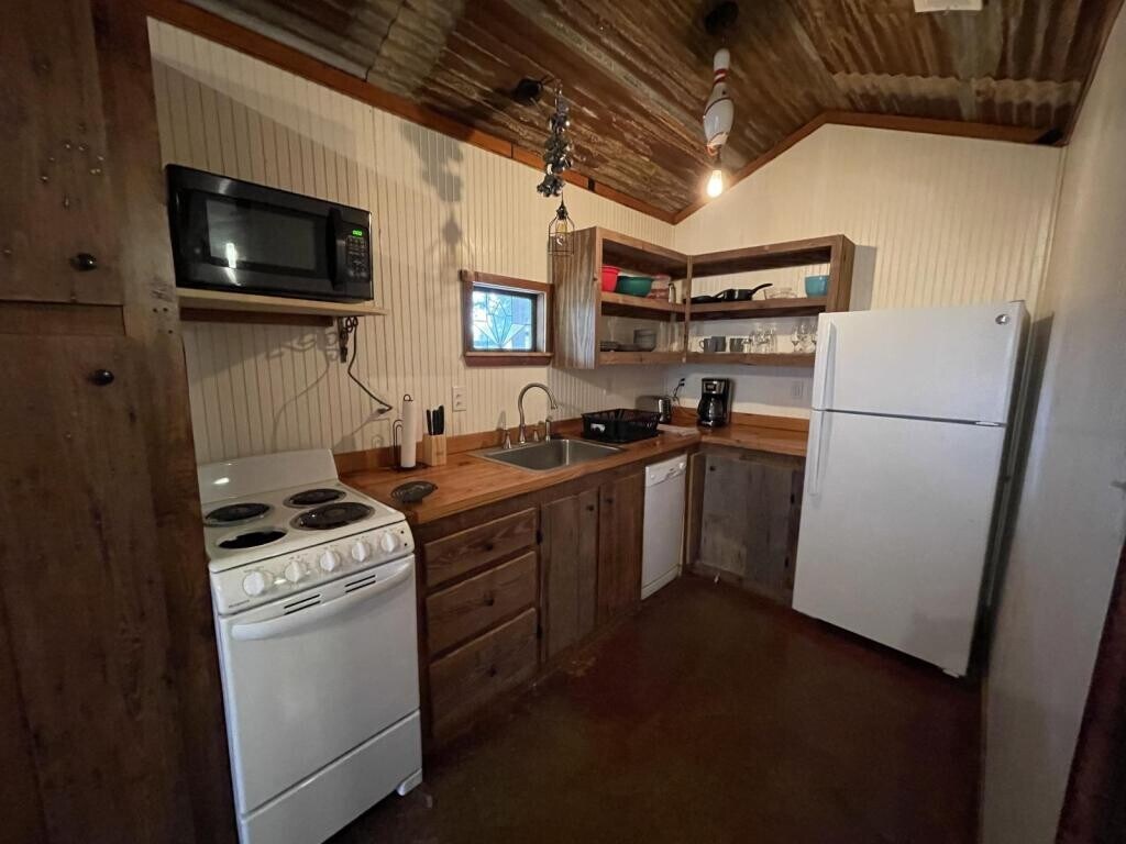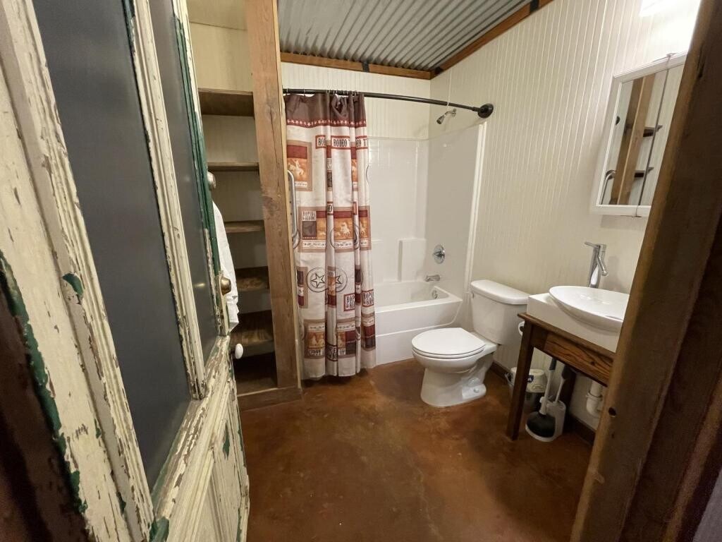 This house is located in a very quiet neighborhood at the edge of town. Since the adjoining properties are big tracks of land you will see wildlife all around, including deer, birds, armadillos, foxes, hawks, and rabbits. This unit has a full bath with tub/shower combo and two bedrooms with separate living and kitchen area.