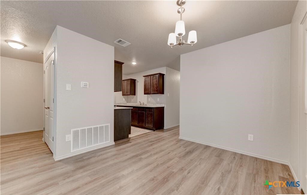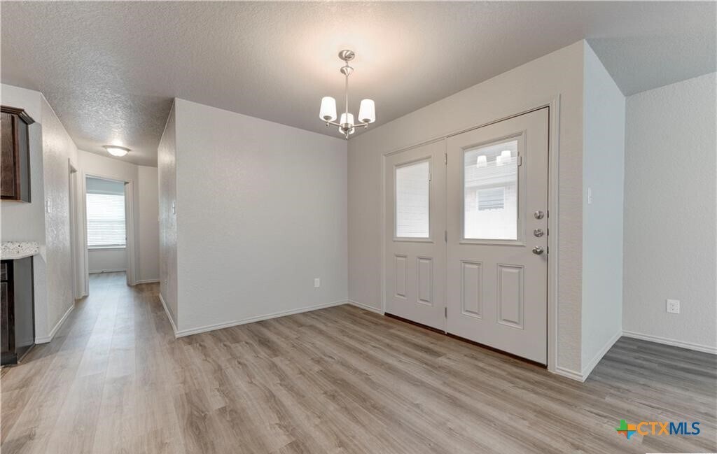 This stunning new 3-bedroom,2-bath duplex with a 1-car garage. Located at the Valleys at Great Hills subdivision with quick access to Fort Hood,shopping,and restaurants. Comes with bright high ceilings,luxury vinyl plank,and recessed lighting. The kitchen is nice and comes with granite countertops,brown cabinetry,and all-black appliances. Minor bedrooms are spacious with ceiling fans and closets. Guests have access to a hall bathroom that contains a tub with a tile surround and a granite vanity with an undermount sink. Laundry will be a breeze in the oversized interior utility closet. The master suite is located at the rear of the unit and boasts of ceiling fan lighting,a walk-in closet,and an en suite with its own bathroom. Watch Cove's natural landscape and the Texas sunsets from your secluded privacy-fenced backyard. The home is pre-wired with fiber optics and high-speed Internet to be subscribed to and activated by the tenant upon move-in