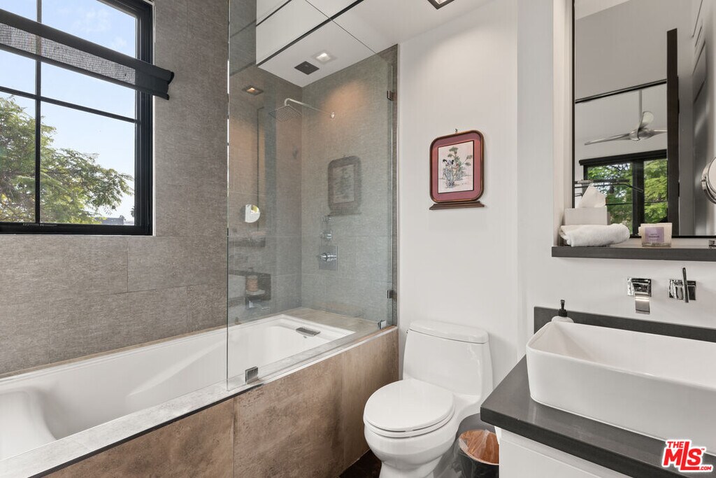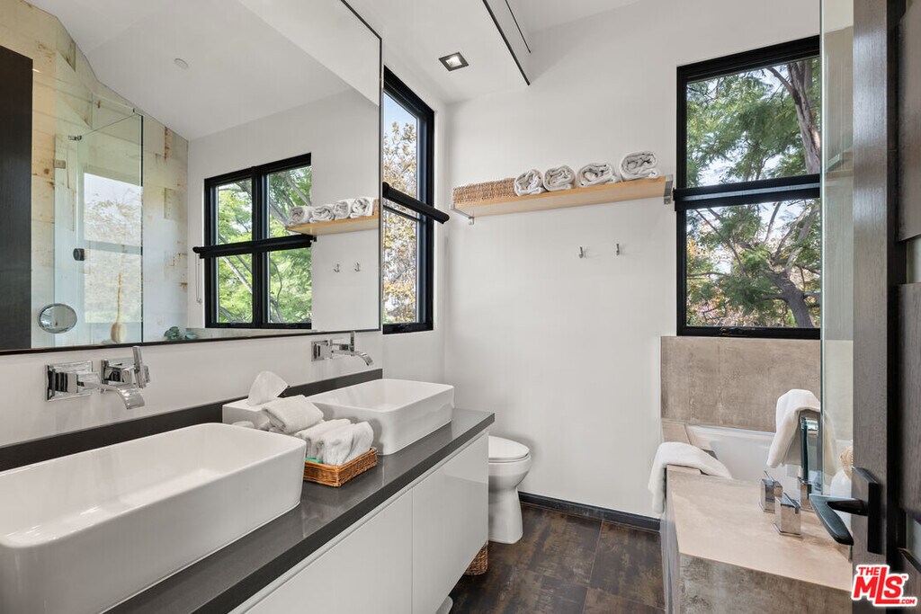 Experience the ultimate modern industrial farmhouse living with this stunning residence, crafted by renowned architect Paul Harrison, AIA. Nestled in a tranquil setting, the home features three spacious ensuite bedrooms plus an upstairs bonus room. The gourmet kitchen, adorned with sleek Italian lacquer cabinets, opens to a welcoming living area that effortlessly extends to the outdoors through expansive La Cantina glass sliders, creating a seamless indoor-outdoor flow. The backyard serves as a private retreat, boasting a sparkling pool and spa, cascading waterfall, steam shower, and outdoor bathroom. The luxurious primary suite offers a private balcony with captivating views, a spa-like bathroom, and a custom walk-in closet. Hedged and gated for optimal privacy, this exceptional residence combines luxury, functionality, and style in every detail. MLS# 26672743