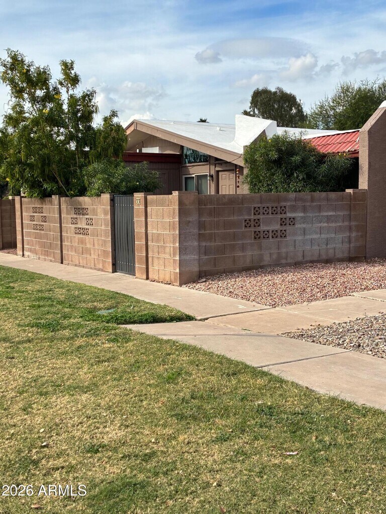 COMPLETE Remodel! We took out the wall between the living area & the tiny kitchen to create a larger eating area. All new flooring and paint everywhere! New hall bath! Well maintained,spacious 3 bedroom/2bath patio home with vaulted ceilings and a rare large private yard. These are all single story dwellings with NO units above you. Very large gated fenced private yard just for your use. Close to ASU,the 101 and Cubs Park for easy access to work and entertainment. The washer/dryer & all appliances are included. It is occupied currently and will be ready to occupy around February 1st. The landlord pays the HOA dues which currently includes sewer and trash.