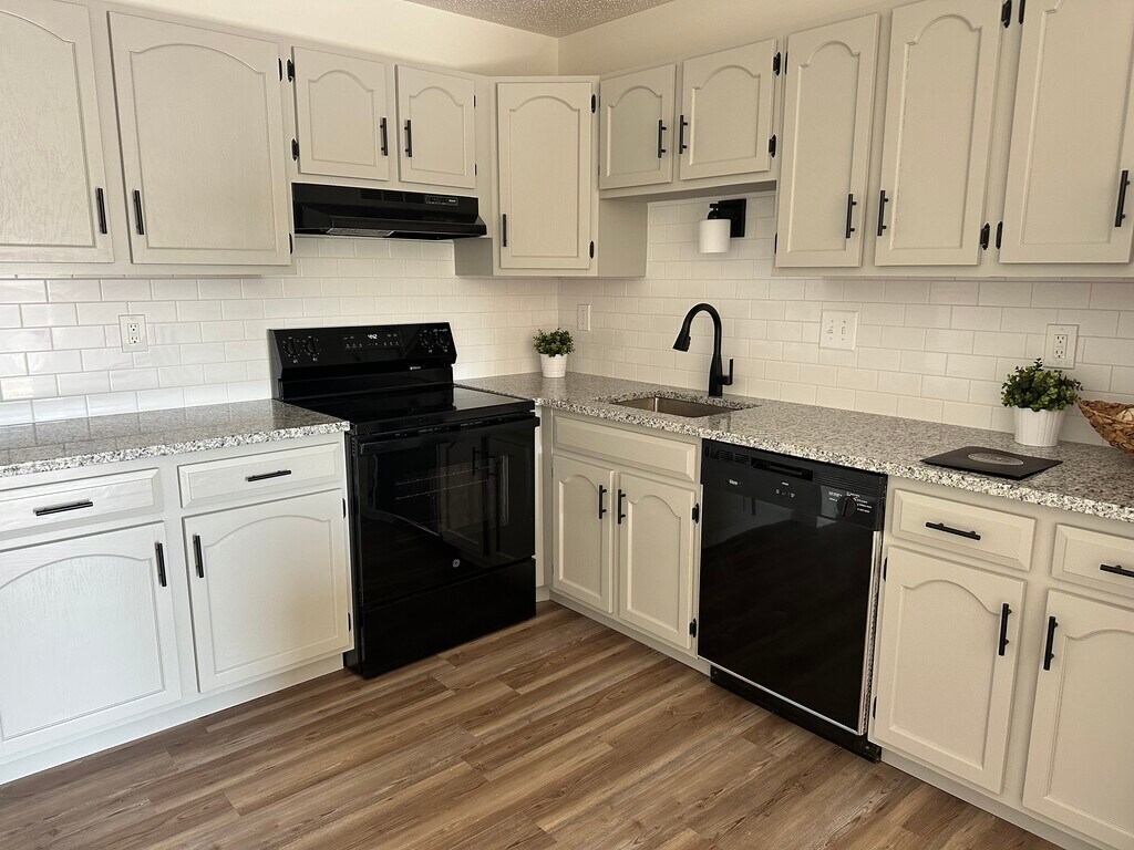 This beautifully renovated 3 bedroom 1 bath condo offers the perfect blend of contemporary style and functional living. From the moment you step inside you'll feel at home in the open concept family room and kitchen spaces. Luxury vinyl plank flooring throughout and private deck with new sliding glass door. The kitchen boasts granite counters, new sink and faucet, tile backsplash new appliances and beautiful lighting. Hallway leads to 3 bedrooms, updated bath and washer/dryer hook ups. Unit also offers additional private storage room and reserved parking spot.
