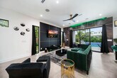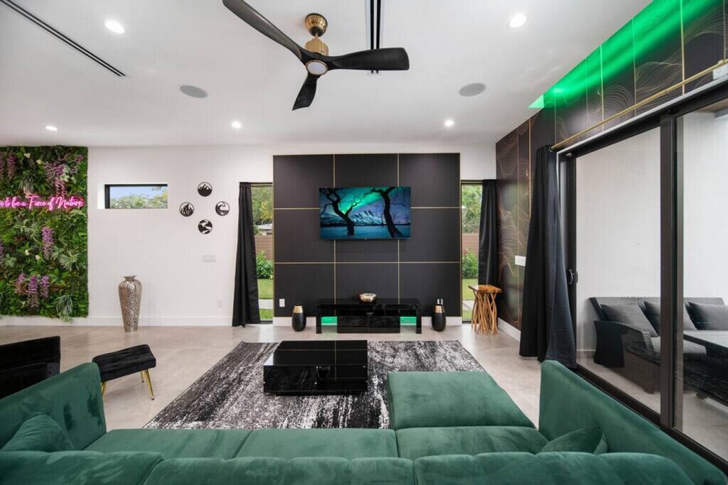 Feel at home in this luxurious home in the quiet and safe neighborhood of Victoria Park, about 5 minutes from Las Olas, shopping, and the beach. Each detail has been hand selected or made to enhance your experience. Whether you're in the calming water room, thunderous air room, beautiful earth room, or fiery fire room, there's something for everyone to love. The garage will fit two vehicles and comes with a free Tesla charger. Additional parking for two vehicles is available in the driveway. Pets are welcome with a fee of $20 per pet per night for 1 pet and a $30 flat fee per night rate for 2 pets. Victoria Park is a quiet residential neighborhood that has a unique blend of luxury modern mansions and key largo luxury rentals surrounded by beautiful foliage and lighting and centrally located to everything Fort Lauderdale has to offer. At the intersection of NE 15th Ave and Sunrise Blvd, there's a Walgreens Pharmacy and Publix Grocery Store right across the street and a park a few blocks away. Check-in time is 4pm and check-out time is 11am. Fort Lauderdale city ordinance quiet hours are from 10pm-8am. There is no smoking inside the house, and any violation of the smoking policy will incur a $1000 fine. Parties and events are strictly prohibited. Any reports or evidence of a party or organized event taking place will be an automatic forfeiture of your stay without a refund. No unauthorized guests are permitted after 12am. If we receive more than 3 complaints about your pet creating a noise disturbance, it may result in the termination of your reservation without a refund. [SI]