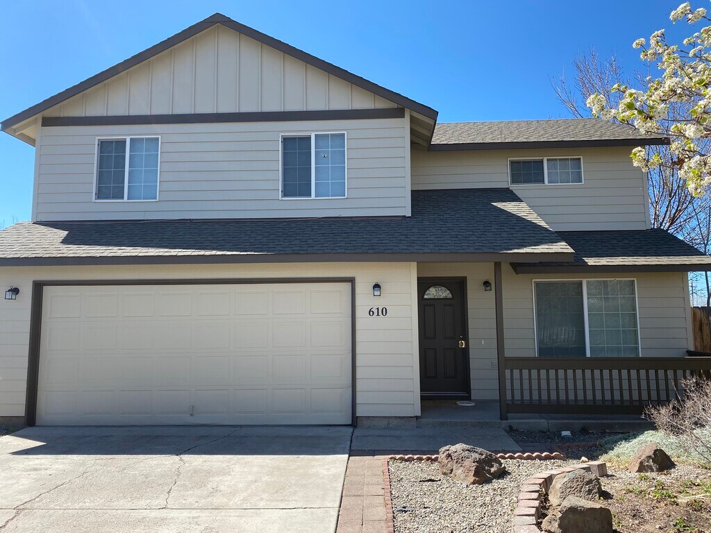 Hard to find 3 bedroom, 2.5 bath house in Stoneridge neighborhood in Prineville. 1400 square foot two story home includes a large two car garage with additional storage and EV charging ready. Amenities include: refrigerator, dishwasher, electric stove, and hookups for washer/dryer. Large fenced and landscaped back yard with an extended view over a wetlands area. Utilities included: water and garbage - tenant is only responsible for electricity and cable/internet. Dog friendly on owner approval. Date Available: 1-Mar-2026 - accepting applications now. One year lease strongly preferred, renewed annually. $2,200/month rent (first and last) with $1,000 security deposit (and optional pet deposit) required at move in. Please submit the form on this page or contact the owner at by phone or text to learn more. Note: This property is managed by a responsible owner/landlord and not a property management company. Sorry but showings are not available until February 21, 2026 to respect the privacy of the existing tenant. Instead please check out a video walkthrough here -