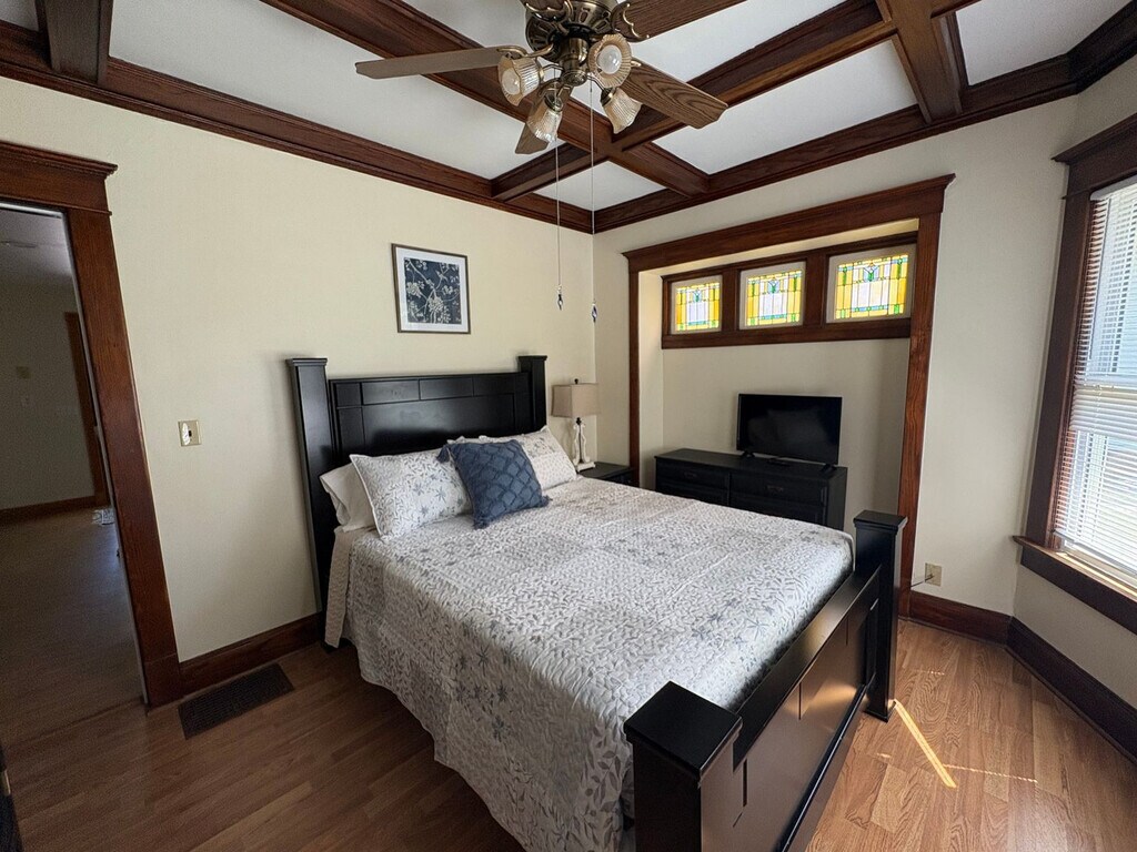 Feel at home in this recently renovated and fully furnished, spacious 4-bedroom rental in La Porte, Indiana, perfect for mid-term stays. Nearly everything is new, from the stylish kitchen stocked with utensils to the updated bathrooms and comfortable bedrooms. This home offers thoughtful updates throughout, including original woodwork, a cozy fireplace, built-ins, and plentiful storage closets. The main floor features a spacious kitchen, laundry area, and one bedroom with a ¾ bath. Upstairs includes 3 more bedrooms—one lined with cedar—a full bath, and a hallway with built-in storage. Enjoy a large living room, covered front porch, and back deck—ideal for relaxing after work. Some dogs are allowed with a monthly pet fee. Located in the heart of La Porte, this home is close to local shopping, grocery stores, and major job sites like Amazon, Microsoft, and the new battery plant. Bi-weekly cleaning is required at the tenant’s expense. Off-street parking fits about 2 cars. [SI]