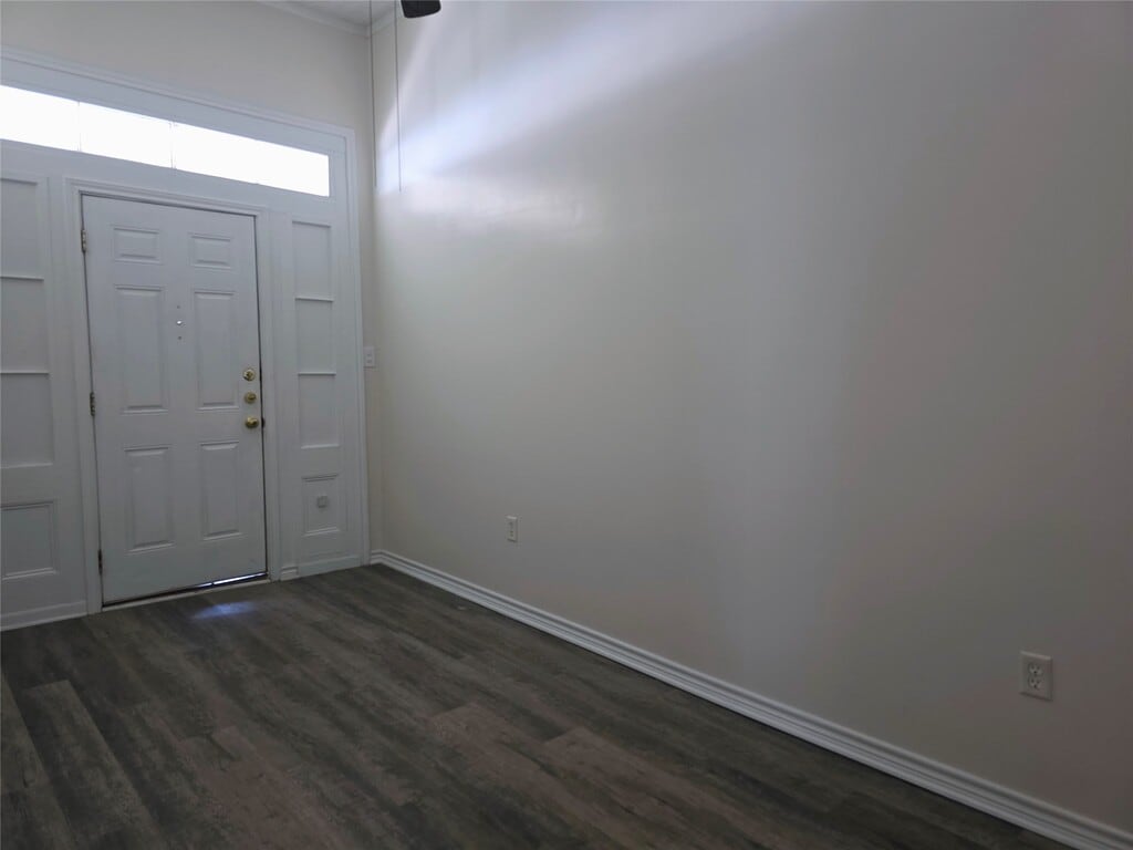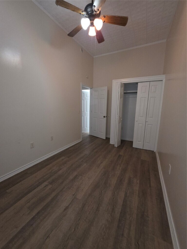 Charming efficiency apartment in a recently renovated duplex on a spacious corner lot. Features a family room and one large bedroom with high ceilings and ceiling fans. Eat-in kitchen with combo washer/dryer. Smaller room could be used as an office or extra bedroom. Laminated plank flooring throughout. MLS# 97374667