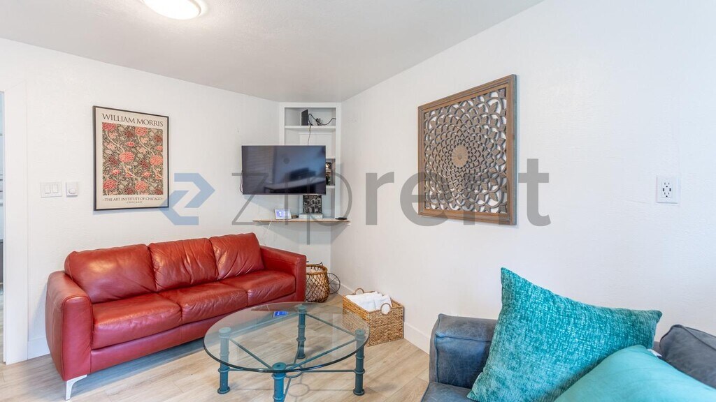 This property is available. Please inquire on this site to schedule a showing. Nestled in the serene landscape of Cazadero, CA, this charming property at 6010 Cazadero Highway offers a perfect blend of rustic charm and modern comfort. The inviting exterior, painted a soothing blue, sets the tone for this cozy retreat. The outdoor deck is ideal for enjoying morning coffee or evening meals, surrounded by lush greenery that provides a sense of peace and privacy. Inside, the living area is designed for relaxation, featuring comfortable seating and a mounted TV, perfect for unwinding after a day exploring the beautiful surroundings. The kitchen is both functional and stylish, equipped with modern appliances and a delightful mix of contemporary and vintage decor. The adjacent dining area is perfect for intimate meals. The bathroom offers a spa-like experience with its elegant floral wallpaper and luxurious soaking tub. Two well-appointed bedrooms provide comfortable accommodations, with the primary suite offering a touch of elegance with its four-poster bed. The property’s proximity to the river adds to its charm, making it a tranquil escape for nature lovers. Whether you’re looking for a weekend getaway or a serene place to call home, this Cazadero gem is sure to captivate. Available: NOW Heating: Baseboard Cooling: None Appliances: Freezer, Refrigerator Laundry: None Parking: None, 2 spaces Pets: Cats Allowed, Small Dogs Allowed Security deposit: $2,500.00 Included Utilities: Sewage, Internet Additional Deposit/Pet: $500.00 This property has a home security system. Disclaimer: Ziprent is acting as the agent for the owner. Information Deemed Reliable but not Guaranteed. All information should be independently verified by renter. This property is listed by Ziprent on behalf of the property owner for tenant placement services only.