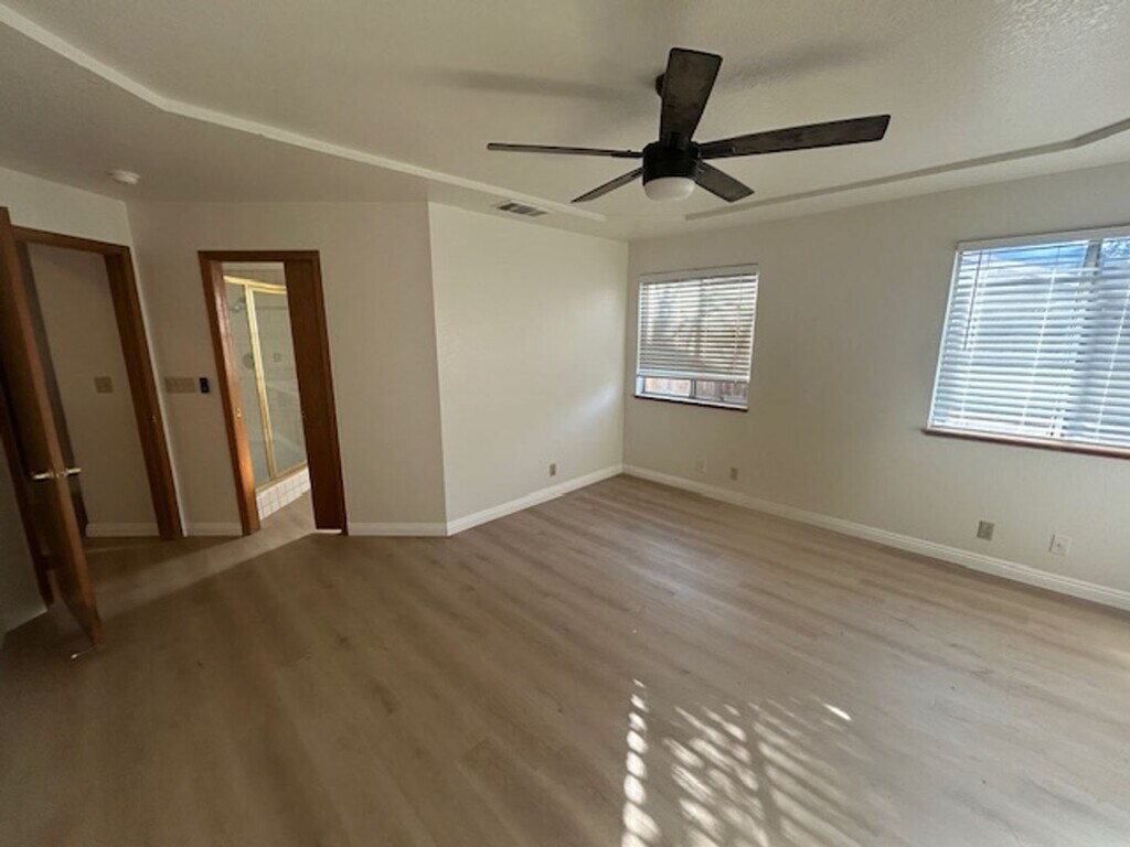 Welcome to this newly remodeled gem located in the heart of Visalia, CA. This stunning home boasts three spacious bedrooms and two full bathrooms, offering ample space for your comfort and convenience. The interior is beautifully designed with vinyl plank flooring throughout, adding a touch of elegance and durability to your living space. Each room is equipped with a ceiling fan, ensuring a comfortable atmosphere all year round. This home is not just a place to live, but a statement of style and sophistication. Experience the perfect blend of luxury and functionality in this remarkable home. Don't miss out on this opportunity to make this your dream home!
