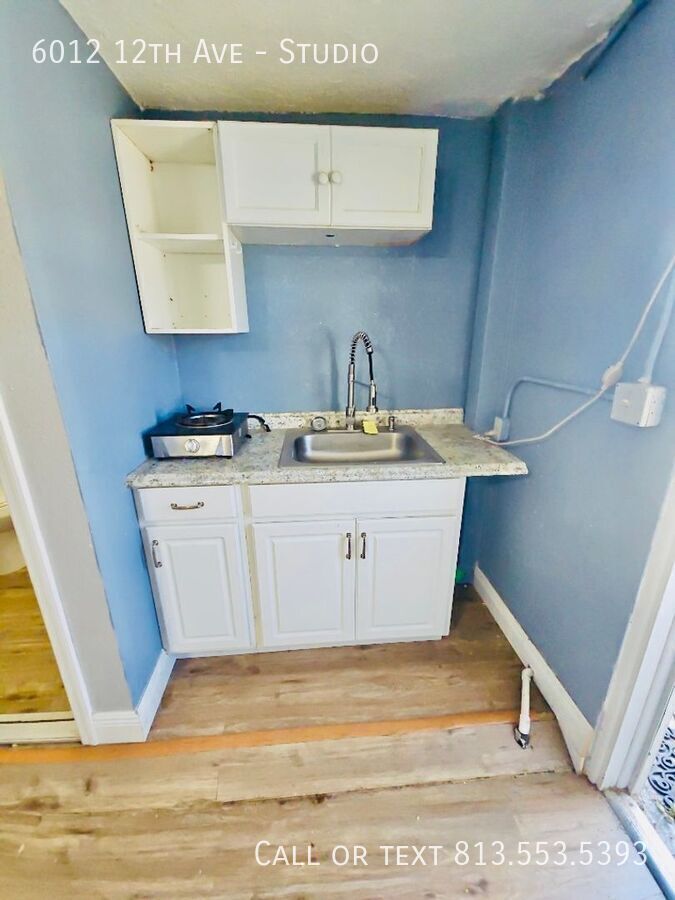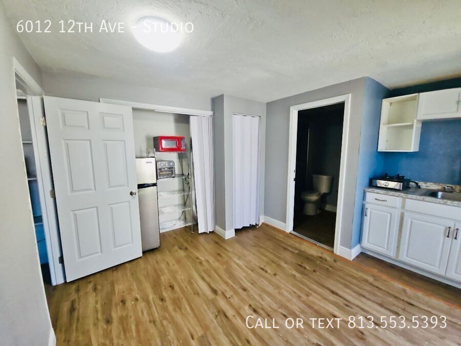 This 318 sq ft studio residence at 6012 12th Ave, New Port Richey, FL 34653 features a compact layout with clearly defined use of space, including one bedroom and one bathroom. The interior is designed for efficient, self-contained living without shared amenities. The kitchenette includes a refrigerator, microwave, and gas stove top, operated by a small dedicated propane tank. A water heater is installed. The property offers assigned parking directly in front of the garage, ensuring consistent and convenient access. No backyard or pool access is included. Water, electricity, and internet are included in the rent. Only 1 pet is allowed. The location provides quick access to US-19, placing Downtown New Port Richey within minutes and offering direct routes to retail corridors along Little Road, Gulf View Square Mall, medical facilities, and essential services throughout central Pasco County. Electric Internet Water