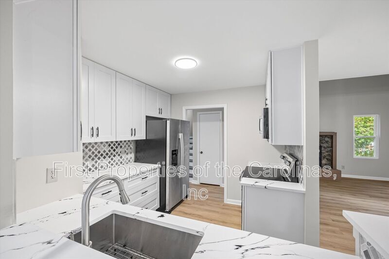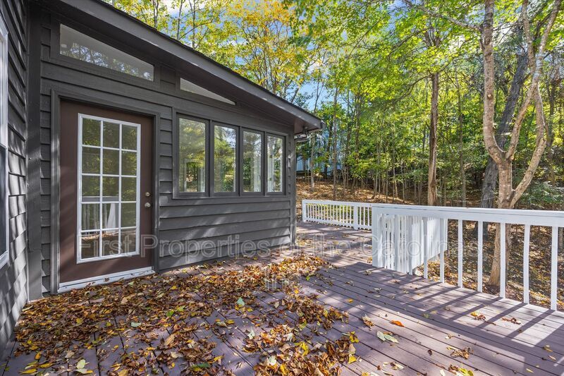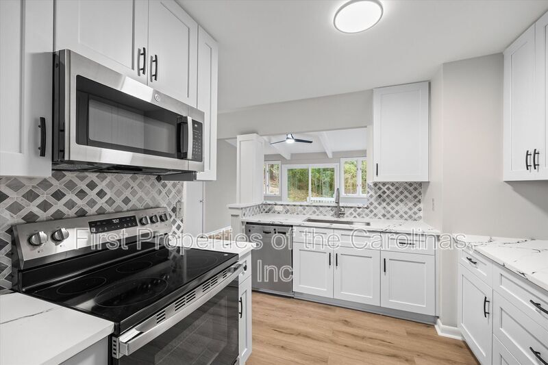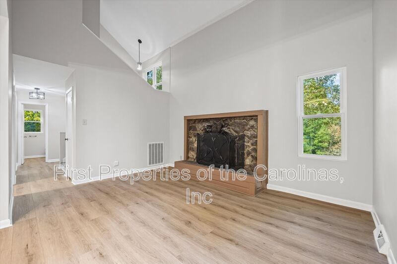 Beautifully updated and freshly painted 3-bed, 1.5 bath in Tega Cay! The kitchen features new Quartz countertops and cabinets, a farm sink, and SS appliances. The great room boasts a vaulted ceiling and a wood-burning fireplace and opens to the dining area, kitchen, and a large sunroom. The sunroom has lots of windows for plenty of natural light and opens to two large decks, which would be great for entertaining or simply relaxing after a busy day. There is a nice-sized bedroom on the main level and a half bath. The primary bedroom is on the upper level, along with another secondary bedroom. They share a full bath with double vanity sinks and a shower/bath combo. The laundry closet is also on this level. Pets Conditional. **No Cats**