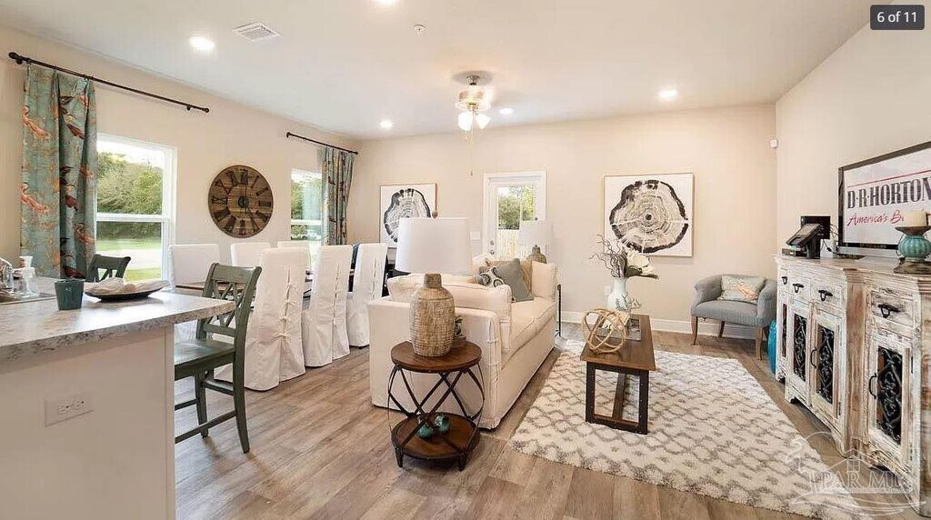 Stunning 2 Story Townhome located off Saufley Field Road Quick access to Hwy 90 and North Blue Angel Parkway. 15 minute drive to Naval Hospital Pensacola 20 min to NAS. Townhome is 2 Story,that features 3 bedrooms/2.5 baths and a 1 Car Garage,drive way for 2 additional vehicles. Beautiful home boasts a wide foyer and elegant nine foot ceilings. The kitchen has a Frigidaire smooth top range,microwave and dishwasher with 4-5 stool bar area. The stairs and entire upstairs is carpeted. The upstairs master suite is quite spacious,fitting a king bedroom set with ease and has a large walk in closet. The master bath features a dual vanity counter top and wide walk-in shower. Washer and dryer closet located upstairs for easy access and convenience. The backyard is not fenced in,however neighbors immediately to the left and one house down to the right are fenced creating a small semi "fenced" in area that provides spacious area for children to play or pets to roam. Images provided are of staged home,very similar floor plan only difference is this is an interior unit so living room does not have windows on side,just straight out from kitchen. Very pet friendly,no size breed/restrictions,with owner approval and non-refundable $250 pet fee per pet . If home is to be rented by several individuals,roommates must apply separately and qualify individually. No smoking inside the home.