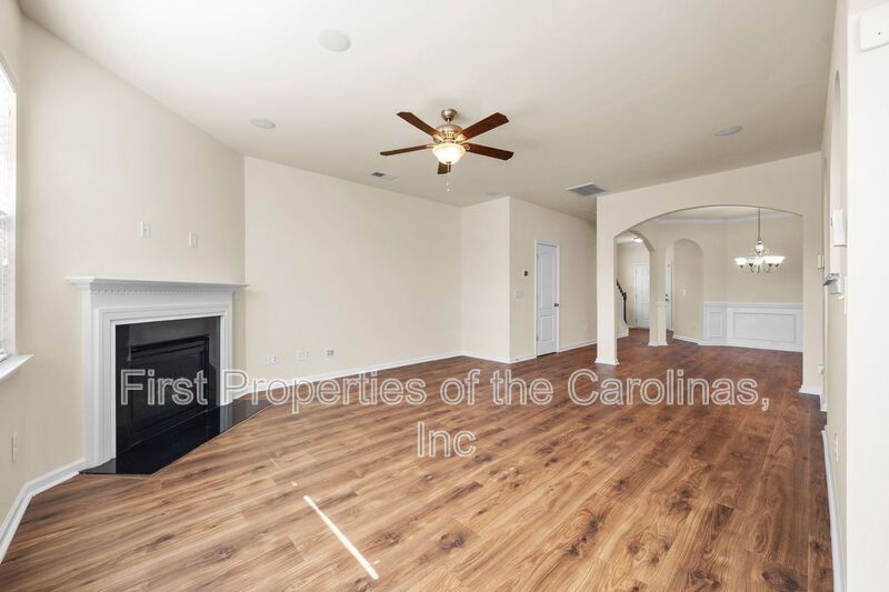 Stunning 6-bed, 4.5-bath home in Stowe Point on a corner lot! This home has so much space! Open Floor plan on the main, including the dining room, family room, and kitchen. The kitchen features granite counters, a work island, an eat-in breakfast area, and a walk-in pantry. The kitchen opens to the large family room with a gas log fireplace. There is one small bedroom on the main floor off the kitchen with an ensuite bath. There is also an office space in the front next to the dining room. The primary bedroom is on the second level with a large custom WIC with built-ins and an ensuite bath with a double-sink vanity, a garden tub, and a separate shower. Three nicely sized secondary rooms on this level share a full hall bath with a large double-sink vanity and a shower/tub combo. The laundry room is also on this floor. On the third level is a large loft area, which would work well for media, office, or kids area, and a bedroom with an ensuite bath and WIC. The large back patio is brick pavers with a built-in grill, great for entertaining any time of year. This home has so much to offer. Pets conditional. **No Cats**. Amenities: Walking Trails, Playground, Outdoor Pool, Sidewalk