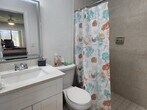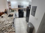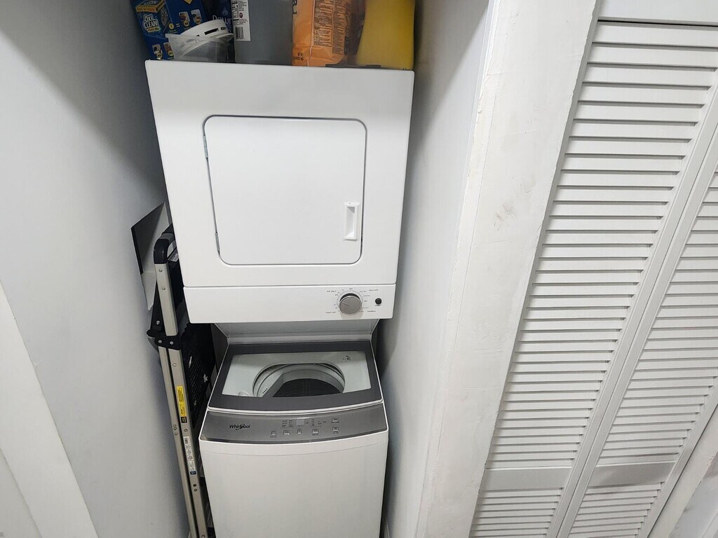 Charming and beautifully renovated 3-bedroom, 2-bathroom condo located on the second floor. The unit features spacious tile floors, new ceiling fans in the bedrooms, and a fully renovated open-concept kitchen with brand-new cabinets, appliances, and granite countertops. It also offers a new air conditioning system and in-unit washer and dryer for added comfort. This condo is move-in ready and perfect for immediate enjoyment. Residents enjoy access to a large pool, tennis courts, and two assigned parking spaces for convenience. The property also includes accordion hurricane shutters for peace of mind.