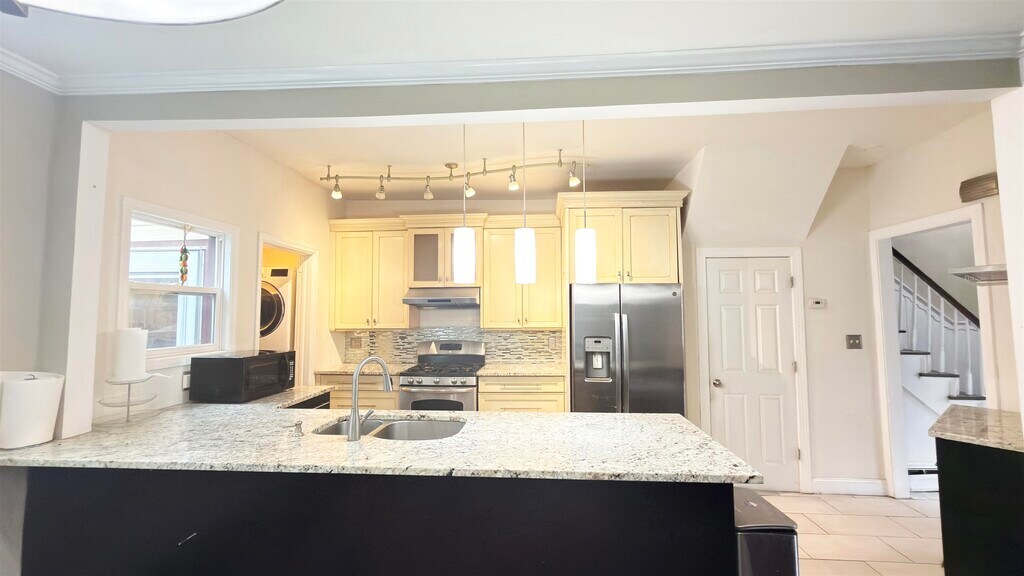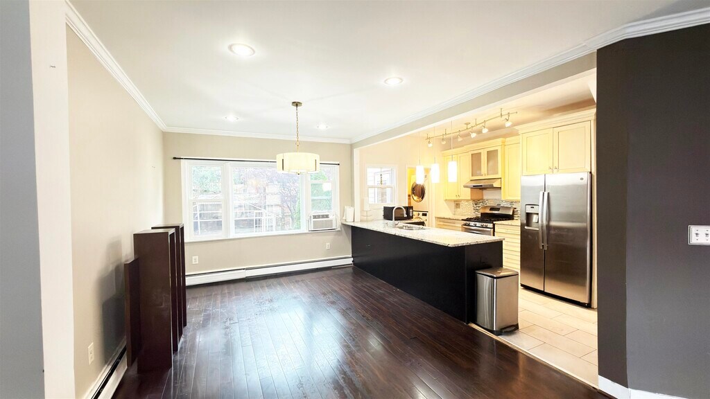 Live peacefully in one family consisting of 2 levels of living space, plus a large backyard. First floor features an open concept living room, kitchen, dining room, half bath with washer and dryer with large windows and lots of natural light and a door leading to the large private backyard. Second floor offers 4 bedrooms, one full bath with lots of lights throughout. Tenants pay all utilities such as water, sewer, gas and electricity. Buyers must provide renter's insurance. The basement is not included. This house is conveniently located 2 blocks from BLVD east and one from park Ave shops, restaurants, cafes, banks and 4 blocks to Bergenline ave, minutes from Edgewater high end shopping and parks, houses of worship and schools.