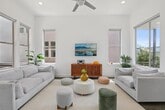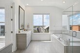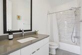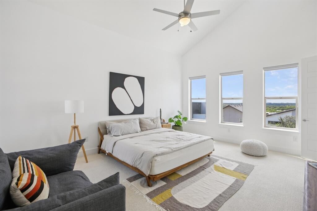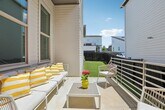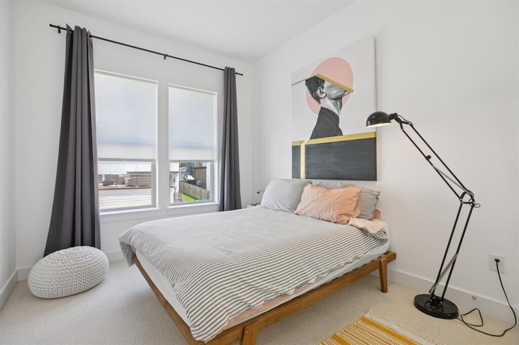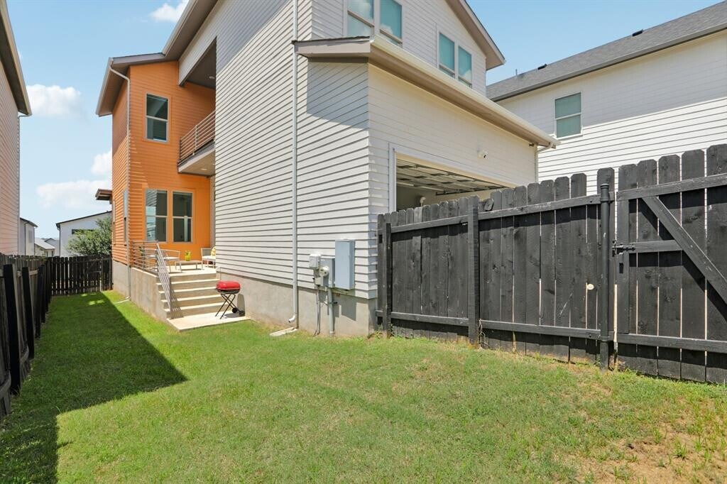 Located in Northeast Austin, this sleek and contemporary 2-story home blends modern style with everyday comfort, just minutes from downtown. Soaring ceilings and expansive windows fill the open great room with natural light, while custom shades provide both privacy and ambiance. The oversized kitchen island flows seamlessly into the living and dining areas, creating an ideal space for both casual meals and formal gatherings. Quartz countertops, Bosch appliances, and Hansgrohe fixtures add a touch of luxury to the kitchen. Upstairs, all bedrooms are generously sized and bathed in natural light. The primary suite offers a private retreat with a spa-like bath featuring a soaking tub, glass shower with handheld and rain shower heads, dual vanities with framed mirrors, and a spacious walk-in closet. Fully furnished! A second-story balcony adds a charming outdoor escape. Step outside to a covered back patio overlooking the fully fenced yard, complete with an automatic sprinkler system. The Agave community is known for its striking modern architecture, walking trails, bike paths, and park—plus sweeping views of downtown Austin. This home offers the perfect balance of privacy, convenience, and vibrant urban living.