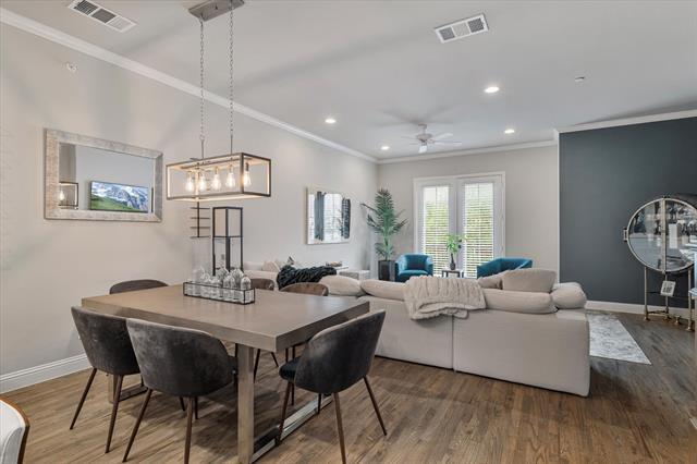 Stunning north-facing luxury townhome in the heart of Downtown Frisco! This move-in ready residence showcases a modern transitional design with a first-floor game room, bedroom, full bath, and utility room. The chef’s kitchen impresses with Quartz countertops, stainless steel appliances, gas range, built-in microwave, under-cabinet lighting, breakfast bar, and an oversized walk-in pantry. The spa-inspired primary suite features a deep freestanding tub, frameless shower, dual sinks, and a custom walk-in closet. Enjoy a sleek electric fireplace, balcony with French doors, two laundry rooms, 8-ft solid wood doors, and high-end finishes throughout—all just steps from Frisco Square’s shops, dining, entertainment, and with easy access to DNT and Toyota Stadium.