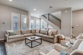 Rare opportunity to rent a single-family corner detached home with a fully fenced yard, perfect for a furry friend or outdoor entertaining. Designed with both functionality and flow in mind, this home offers a layout that adapts effortlessly to modern living. The entry level provides a flexible space ideal for a private guest room or office, with French doors that open to an inviting covered porch and a charming, street-facing yard with turf. One level up, the home opens into a bright, expansive entertaining space where cooking, dining, and relaxing naturally come together. The open-concept layout showcases a chef’s kitchen centered around an oversized island, a formal dining area, and an expansive living space highlighted by an elegant Frame TV. Just off the living room is a covered patio, perfect for grilling. The third floor is dedicated to the primary suite, featuring a custom paneled statement wall, a spa-inspired bath with a soaking tub and walk-in shower, and a generous walk-in closet with custom shelving. A secondary guest bedroom with an en-suite bath and a full-size laundry closet complete the top floor. An attached two-car garage with ample storage adds everyday convenience. Thoughtfully designed and impeccably maintained, this home truly shows like new.