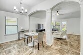 Welcome to this beautifully maintained 3-bed,2-bath home in Rose Ranch. Step inside to find high ceilings,graceful archways,& elegant tile flooring. The formal dining room impresses with crown & chair rail moldings,a statement chandelier,& tall windows that frame views of the front yard. The layout flows seamlessly into the island kitchen — a true centerpiece of the home — featuring granite countertops,a spacious center island with pendant lighting,a stylish tile backsplash,stainless steel appliances,& abundant cabinetry. A casual dining area bathed in natural light from a large window & a modern chandelier sits just steps away. At the back of the home,the family room offers a welcoming gathering space with a cozy fireplace as the focal point. The private primary suite provides a relaxing retreat,complete with an ensuite bathroom. Two additional bedrooms & a full bath offer versatility. Outdoors,enjoy a spacious covered patio perfect for entertaining or unwinding. MLS# 36639076