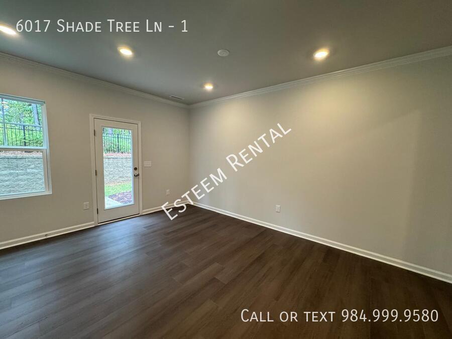 Welcome to a stunning and spacious 3-bedroom, 3-bathroom END unit townhome offering modern living. This brand-new home features an open-concept layout filled with natural light, perfect for both relaxing and entertaining. The main floor boasts a beautifully appointed kitchen with stylish gray cabinetry, quartz countertops, a subway tile backsplash, and stainless steel appliances and large pantry. Just off the kitchen is a generous living and dining area that opens to a private backyard, ideal for quiet evenings or small gatherings. Upstairs, you'll find a versatile loft space that can be used as a home office, reading nook, or additional lounge. The primary suite offers a luxurious retreat with a double vanity, oversized shower, private water closet, recessed lighting, and a large walk-in closet. Two additional bedrooms share a full hall bath, and all bedrooms are prewired for ceiling fans. A full-sized laundry room is conveniently located on the second floor, along with upgraded hardwood-style stairs and designer finishes throughout. Additional perks include a 2-car garage with a 240V outlet, ***high-speed internet included in the rent***, and access to community amenities. Located in a quiet, newer development with easy access to RTP, Airport, shopping, Major HWYs, and dining, this home offers the perfect blend of comfort and convenience.