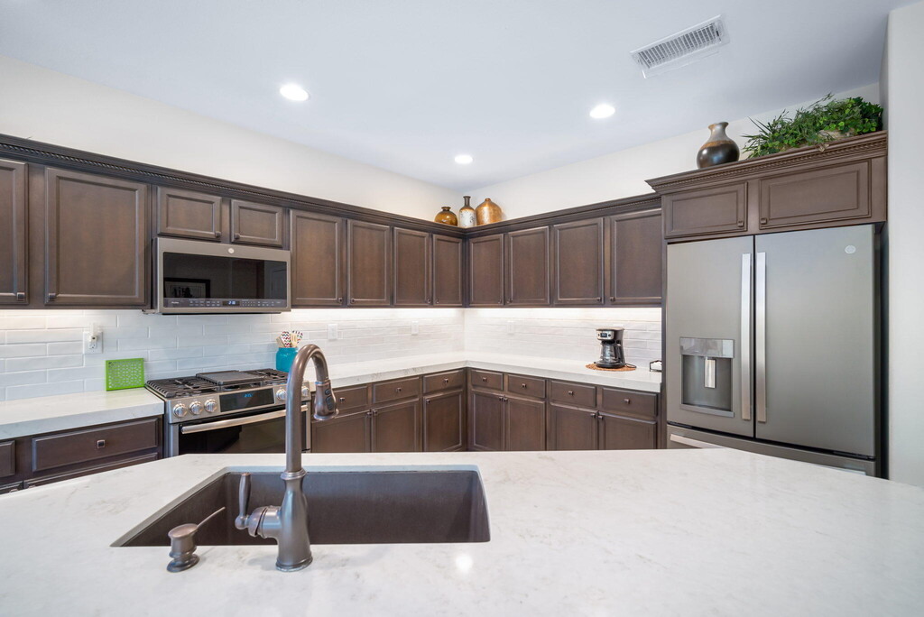 RENTED NOV. 1,2024 THRU APRIL 30 2025. 11-1-25 thru 3-31-26. Trilogy in La Quinta is a 55 and older community. Enjoy the spacious and well-appointed Casa-del Sol while calling this Trilogy Monterey model home. Wake up refreshed in the comfort of the primary suite's adjustable King bed. With direct access to the backyard,you can enjoy your morning coffee lounging under the ample shade on the resort-style furnishings or relax on a chaise under the sun spool-side. Boasting ample space for your occasional guests,Casa del Sol is appointed with a second bedroom with a queen bed and desk,ideal for working from home,a third bedroom with a king-size Murphy bed plus a separate casita with a king bed,convenient kitchen nette boasting a mini-fridge,microwave,Keurig,sink and dishes. All bedrooms have TV's for enjoying your favorite streaming apps. Additionally,the TV's in the primary suite and great room (65' 4K curved) are equipped with cable. You'll feel at home in the well-appointed kitchen with newer GE Profile appliances,Kitchenaid mixer,instant Pot and more to make meals come together quickly. Grill up some favorites on the patio on the electric BBQ. Enjoy a trip around the gorgeous Trilogy development in the four-seater golf cart. Take advantage of all Trilogy has to offer at the clubhouse including two pools. gym,tennis,pickleball,bocce,Cafe solaz and more
