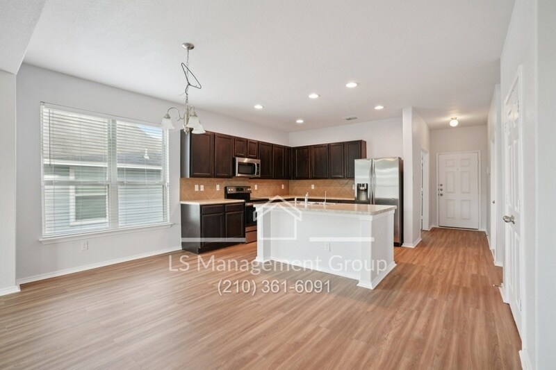 Welcome to this spacious and well-maintained 4 bedroom, 2.5 bathroom home located in a peaceful neighborhood just minutes from Randolph AFB, Fort Sam Houston, shops, dining, and major highways. With over 2,200 sq ft, this home offers plenty of room for comfortable living. Downstairs Primary Suite Large primary bedroom with walk-in closet and private bath. Open-Concept Living Bright living room, dining area, and kitchen that flow together great for family time and entertaining. Modern Kitchen Granite countertops, plenty of cabinet space, and a functional layout for cooking. Additional Upstairs Living Space Includes a loft/game room perfect for an office, playroom, or second living area. Spacious Bedrooms Three generously sized bedrooms upstairs with a full bathroom. Outdoor Living Covered back patio and a fenced backyard ideal for relaxing or grilling. 2-Car Garage + Driveway Convenient parking and storage. Built in 2016 Modern construction with energy-efficient features.