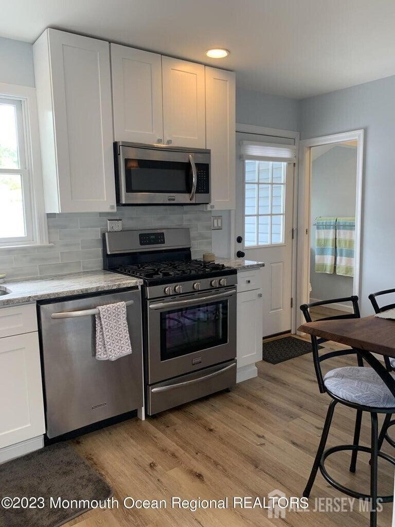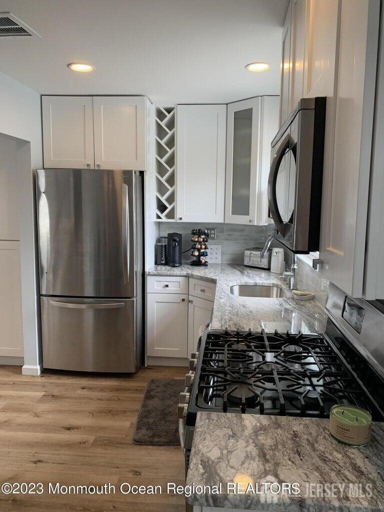 Welcome home! Pride in ownership is an understatement! Fully furnished ANNUAL rental located in the heart of Belmar. This impeccably modernly upgraded,open concept home offers 2 bedrooms with new queen beds,a large loft with a new TV,neutral tones,natural lighting & tons of storage! Eat in the kitchen with lots of cabinet space & unique dinette area. Recessed lighting. Great size living room perfect for entertaining,with a newer TV,& a built-in modern storage cabinet. BRAND NEW ROOF! No maintenance private backyard offers an outdoor shower,lovely patio set,new pavers,gas grill,fire pit,a beautiful garden,driveway,partially fenced,Includes; high speed internet,2 annual beach passes,water filtration system,2 surfboards,private laundry in basement. This home has everything you need! All you have to do is move yourself in. Very close distance from the beach,restaurants,& shopping! Home does not have to be leased fully furnished. Please see attached documents for all upgrades and includes!
