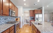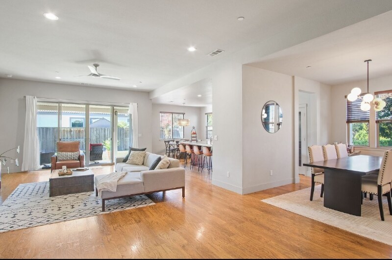 Property Id: 2262905 Welcome to a beautifully maintained single story home in Oakdale's desirable Bridle Ridge community. This corner lot property features stunning curb appeal with a stone exterior, manicured landscaping, and a charming covered front porch. Inside, an open concept floor plan offers a seamless flow between the living, dining, and kitchen areas ideal for both family living and entertaining. The spacious kitchen showcases granite countertops, rich wood cabinetry, stainless steel appliances, and a large island with bar seating that opens to the light filled living room. The primary suite includes direct backyard access, dual sinks, a soaking tub, and a separate shower. Enjoy hardwood flooring throughout the main living spaces, recessed lighting, and large sliding glass doors leading to a covered patio and private backyard perfect for outdoor dining or relaxing evenings. Located near parks, schools, and shopping, this home also benefits from being within the MID service area for lower electricity costs.