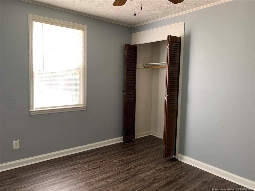 Charming 2 bedroom, 1 bathroom home in downtown Raeford. Window blinds installed throughout the home. The kitchen features updated cabinetry and countertops. The bathroom includes a modern vanity. The home is situated on a large lot with a spacious backyard. Move-in ready! Pets allowed on a case-by-case basis with a non-refundable pet fee. Please note: photos are from before previous tenant.