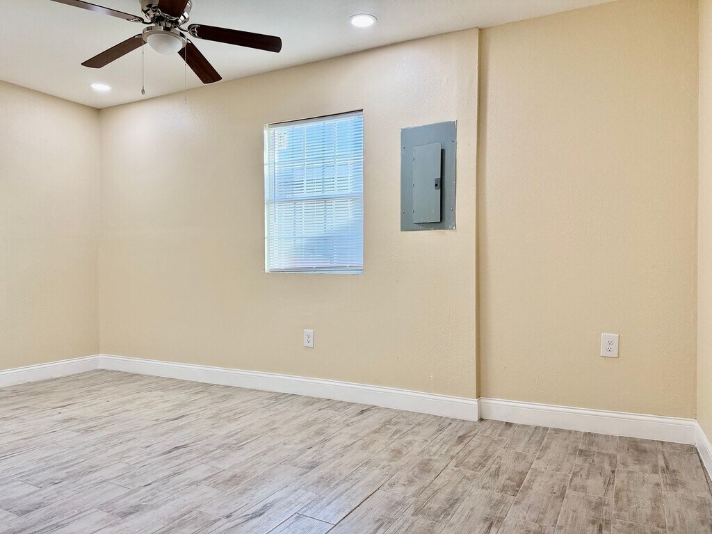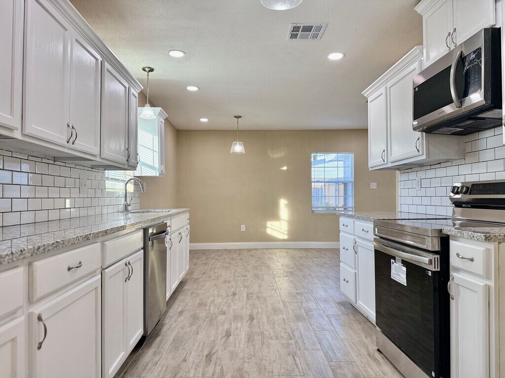Newly remodeled home featuring fresh paint and brand-new stainless steel appliances. Tile flooring throughout, ceiling fans in multiple rooms, and ample kitchen storage. Includes a carport with attached storage and a spacious, fully fenced backyard—perfect for outdoor living.