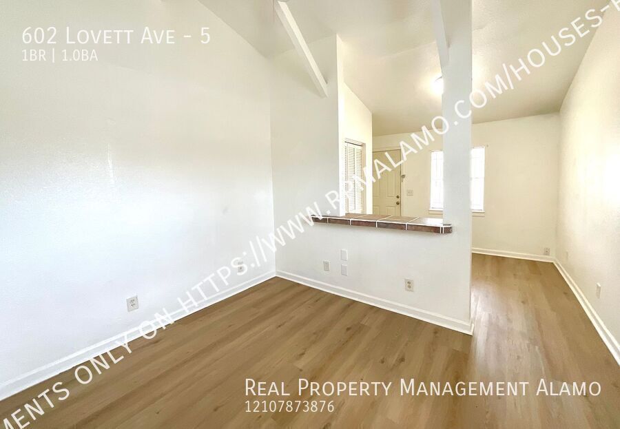 Welcome to Unit 5 at 602 Lovett Ave — a beautifully remodeled 1-bedroom, 1-bathroom unit nestled on a corner lot in San Antonio. Fresh updates throughout give this home a clean, modern feel that's move-in ready and easy to love. The well-appointed kitchen comes equipped with a refrigerator and stove/oven. A ceiling fan and A/C window unit keep things cool and comfortable, while the thoughtful layout makes the most of every square foot. Ideally located just minutes from Lackland AFB, this unit is a fantastic option for anyone looking to stay close to the base without sacrificing access to the best of San Antonio's urban amenities. For more information, e-mail us at Thank you! Schedule a showing TODAY!: Apply here: RPM Alamo is proud to offer deposit-free living to qualified renters through Obligo! We understand that moving costs can add up, so we want to extend financial flexibility to our residents. When you move in with us, you can skip paying a security deposit and keep the cash for activities you care about. Learn more about the benefits of deposit-free living. More details on the application process. *ASK HOW TO QUALIFY* All Real Property Management Alamo residents are enrolled in the Resident Benefits Package of $35 monthly which includes credit building to help boost your credit score with timely rent payments, $1M Identity Protection, utility concierge service making utility connection a breeze during your move-in, our best-in-class resident rewards program, and much more! More details upon application. ***The information contained in this advertisement is subject to change. The terms of any lease, should you execute a lease with RPM, are found solely in the Lease Agreement itself, along with any applicable addenda. Situations that may affect change include, but are not limited to an applicant's credit rating which may affect the required security deposit amount, and new information provided to us regarding a unit that we did not know at the time we placed this advertisement.*** $350 Pet Fee Non Refundable $50 Pet Rent 1 Bathroom 1 Bedroom A/C Window Units Corner Lot Near Lackland Afb Upstairs Unit