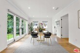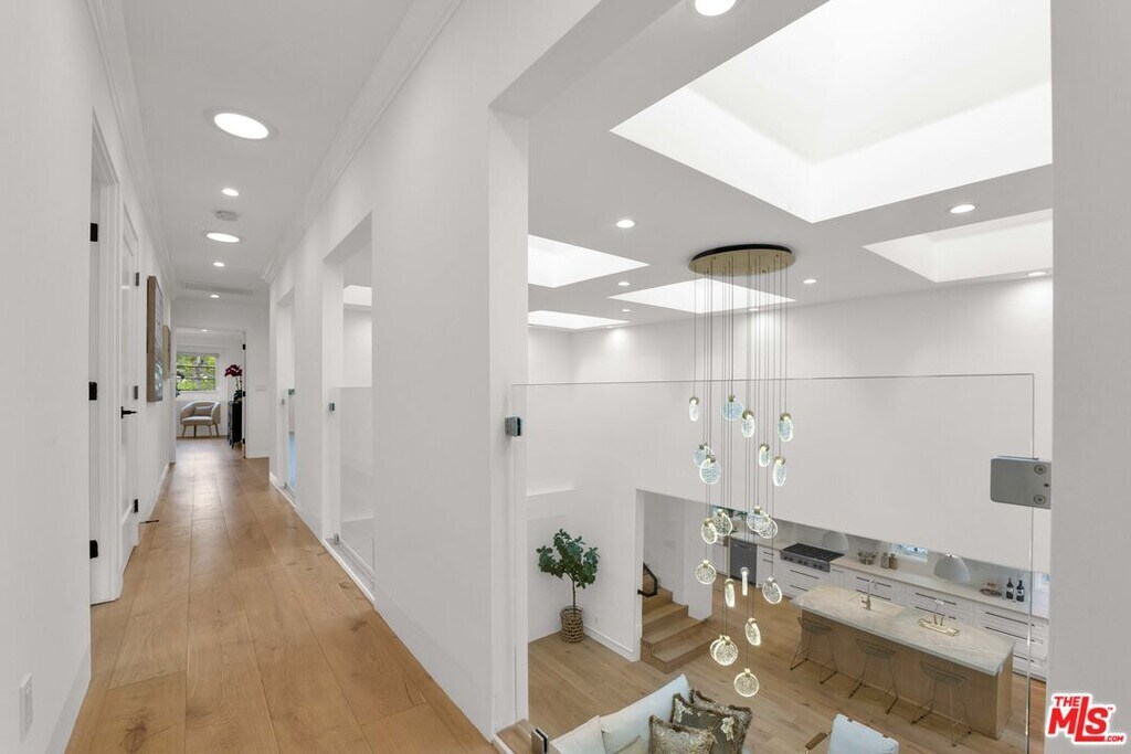 A stunning contemporary residence in the heart of Hancock Park, one of the most sought-after and convenient neighborhoods in Los Angeles. Rebuilt and redesigned in 2018 by Sorensen Architects, this home showcases modern sophistication and timeless style.The double-height entry opens into an expansive great room and chef's kitchen, appointed with premium finishes and appliances, including a Sub-Zero refrigerator, Wolf double oven and range, dual sinks, Caesarstone counters, and a White Carrara Extra marble island. Skylights and French white oak floors fill the interiors with natural light, creating an airy and inviting atmosphere.Offering 5 bedrooms (4 upstairs, 1 downstairs) and dual staircases, the home's layout is both practical and luxurious. The primary suite features a custom walk-in closet and spa-like bath with Kallista sinks, a Rift white oak vanity, Italian Bianco Gioia marble, and Porcelanosa tile. Additional upgrades include all-new plumbing, a new roof, LED lighting, Anderson E Series dual-pane windows, dual tankless water heaters, and dual-zone HVAC with Nest thermostats combining comfort, efficiency. MLS# 26654877