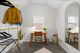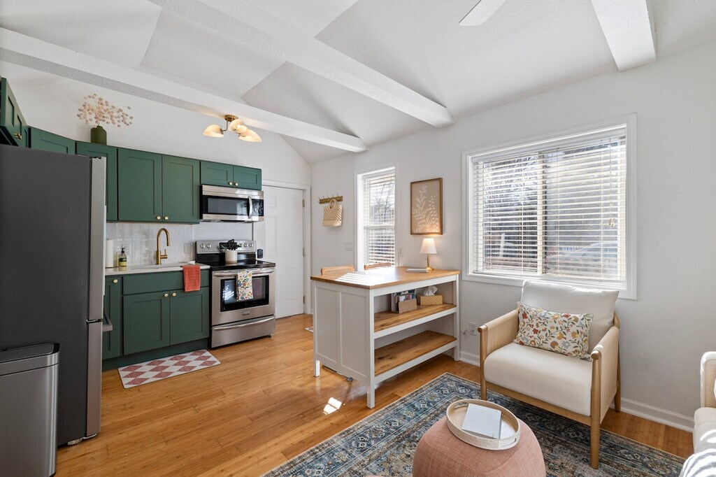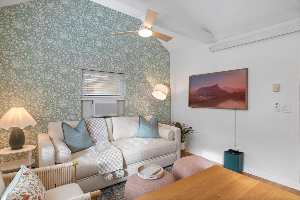 The advertised rate of $6,912/month is the lowest available price, based on a 30 day(s) stay with a move-in date of October 5, 2026. Rates vary depending on the duration of stay, season, and other parameters. For exact pricing and additional pricing components, please visit our website and enter your desired move-in and move-out dates. The rate is applicable when billed upfront; it can be higher if billed in multiple payments. Feel at home in the charming Pickle Cottage, a design-forward 1-bedroom retreat in the heart of Rapid City. This cottage balances vintage charm with thoughtful details and modern comforts. The living room features a spacious Article couch that doubles as a comfortable sleeping space for two (available when booking for three or more guests) and a stunning 55" Hisense Canvas TV. The quiet bedroom retreat has a queen-size hospitality grade bed and a 40" TV. The updated bathroom includes a spacious spa-like shower and a washer and dryer. The open concept kitchen includes a full-size fridge, stove, microwave, coffee station, and is fully stocked with pots, pans, and cooking tools. A flex space with a dedicated workspace, reading nook, and two yoga mats is available. High-speed internet (1 Gig) is available throughout the property. Outside, you'll enjoy a private hot tub tucked away under the South Dakota skies and your own private pickleball court. Access to a carport is available. One well-behaved dog under 50 lbs is welcome. Pets must stay off all furniture, including beds. The backyard is fully fenced, though small gaps may exist, so please keep an eye on your pup. There are also neighborhood cats in the area. Rapid City is known as the Gateway to the Black Hills, with easy access to some of the most iconic landscapes in the American West. Downtown Rapid City is 5 minutes away, Mount Rushmore is 30 minutes away, Custer State Park is 40 minutes away, Badlands National Park is 1 hour away, and Deadwood is 45 minutes away. Restaurants, breweries, coffee shops, and local galleries are just minutes away. Shoes must be removed indoors to help keep the cottage clean and comfortable for all guests. Includes a dedicated workspace. [SI]