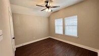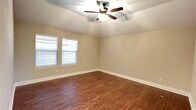 Absolutely gorgeous corner lot house built by Scott Ellis Homes! Luxury wood vinyl flooring throughout this new 3-bedroom, 2 full baths, and 2-car garage house. Home includes an open 10-foot ceiling living space, granite countertops, a large kitchen island, under cabinet lighting, white cabinets, a separate shower and tub, dual sinks in the master bedroom, ceiling fan in each room, crown molding, blinds, frameless shower, covered back patio, stained fence, sprinklers, landscaping, gutters, etc. The neighborhood is 5 minutes from L3-Harris, I-30, Local Restaurants, and Shopping.