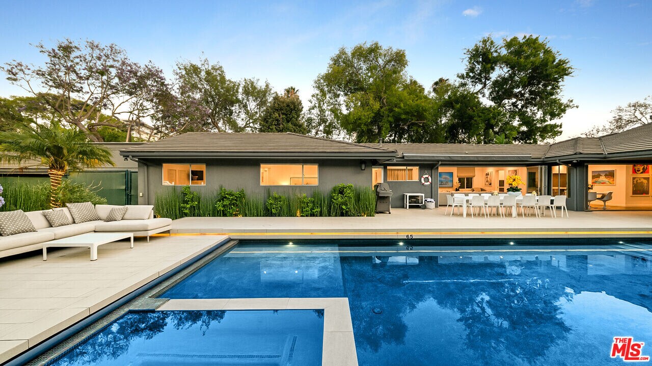 OFFERED FURNISHED-UNFURNISHED - FLEXIBLE TERMS. PICKLEBALL COURT. Luxuriously remodeled and privately gated, this stunning 6-bedroom, 6-bath single-level contemporary estate offers the ultimate blend of modern design, COMFORT and resort-style living. The home features an expansive open floor plan centered around a spectacular newly redesigned backyard with a sparkling pool, spa, custom hardscape, and lush landscaping, creating a true private oasis. WALLS of glass doors and multiple skylights flood the home with natural light while seamlessly connecting the interior living spaces to the outdoor retreat. Designed with a sleek aesthetic, the residence is equipped with state-of-the-art smart home technology and showcases sophisticated finishes throughout. Nearly every living space opens directly to the poolside terrace, where you'll find al fresco dining areas, elegant lounge spaces, a fire pit, and beautifully manicured gardens offering exceptional privacy and tranquility. Reminiscent of a luxury boutique hotel, the home has been thoughtfully curated with designer furnishings, hardwood floors, and top-of-the-line appliances. The outdoor amenities elevate the lifestyle experience with a sport court and private PICKLEBALL court, perfect for recreation and entertaining. PRIME LOCATION CLOSE TO RODEO DRIVE AND THE RESTAURANTS, SHOPS AND EVERYTHING BEVERLY HILLS HAS TO OFFER! MLS ID 26664685