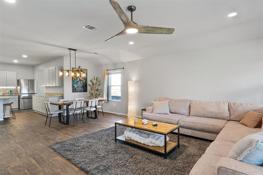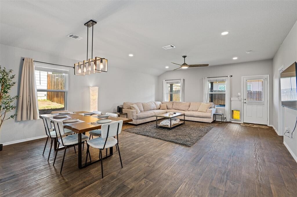 Beautifully updated and fully furnished East Austin smart home just five minutes from Tesla. This move-in ready property offers 2,032 sq ft of bright, modern living space in the quiet Tiermo community and comes stocked with everything you need from day one. Thoughtfully furnished throughout, the home includes complete bedroom sets in every room, a 65†4K smart TV in the living room, additional TVs, fully outfitted kitchenware (pots, pans, dishes, utensils, glassware, cookware), premium towels and linens, and essential household items—perfect for anyone seeking a seamless, turnkey lifestyle. Inside, the open-concept layout is filled with natural light and features quartz countertops, recessed lighting, stylish fixtures, and an inviting flow between the living, dining, and kitchen spaces. A high-end refrigerator, washer and dryer are included, along with smart home features designed for comfort and savings. Solar panels keep electric bills typically under $50 per month, and the home also offers an EV charging outlet in the garage, August smart lock with keypad entry, Google Nest thermostat, and Nest doorbell camera. The spacious primary suite provides a relaxing retreat with an upgraded bath and bidet toilet. Fully furnished secondary bedrooms offer excellent flexibility for families, guests, or remote work setups. An RFID-activated pet door and no breed restrictions make the home truly pet-welcoming. Outside, enjoy a newly landscaped yard with an automatic sprinkler system and a custom patio furniture set built specifically for the space. Whether relaxing indoors or enjoying the private backyard, the home delivers comfort, convenience, and everyday ease Located minutes from Tesla, COTA, the airport, and downtown Austin, this property offers exceptional access to major employers, entertainment, and travel. A rare opportunity to enjoy a fully furnished, energy-efficient home with modern amenities and low monthly costs—all in a peaceful neighborhood setting.