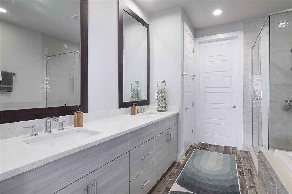 Fabulous modern home with views from upstairs rooms. Open floor plan downstairs. Gourmet kitchen with 5-burner gas cooktop, quartz countertops, Bosch appliances, and wood floors. Multiple storage areas downstairs and upstairs. Master retreat with a luxury master bath. Oversized tub for a relaxing soak, or enjoy the ample frameless shower. Double vanities and a walk-in closet for days. Two additional bedrooms upstairs with lots of natural light. Attached carport plus extra paved space for parking. **Photos are from the last occupancy**Pet fees are listed in the application on Go4Rent. MLS ID 7969449