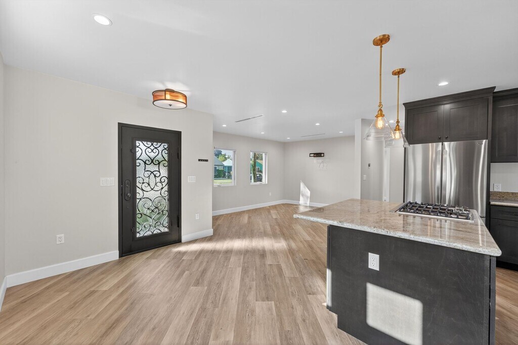 Welcome to 6022 Blackthorne Ave — a stunning, fully remodeled home located in one of Lakewood’s most desirable neighborhoods. This spacious 3-bedroom, 1-bath residence offers a bright, open layout connecting the living, dining, and kitchen areas — perfect for both relaxing and entertaining. Enjoy a modern kitchen featuring brand-new state-of-the-art appliances, all-new wood cabinetry, marble countertops, and an oversized island with built-in electronic features. The home includes recessed lighting, hardwood flooring throughout, and a beautifully updated bathroom with porcelain finishes and modern tiling. Additional highlights include: • Inside laundry area with washer and dryer included • Central AC and heat • Detached 2-car garage with a tandem driveway • Large front and back yards with fresh landscaping • Adorable back patio area, perfect for gatherings Gardening service is included. Tenants are responsible for all utilities. Please note: The backyard shed is not included in the rental. Conveniently located near schools, parks, shopping centers, restaurants, and easy freeway access — this home offers both comfort and convenience in a highly sought-after area.