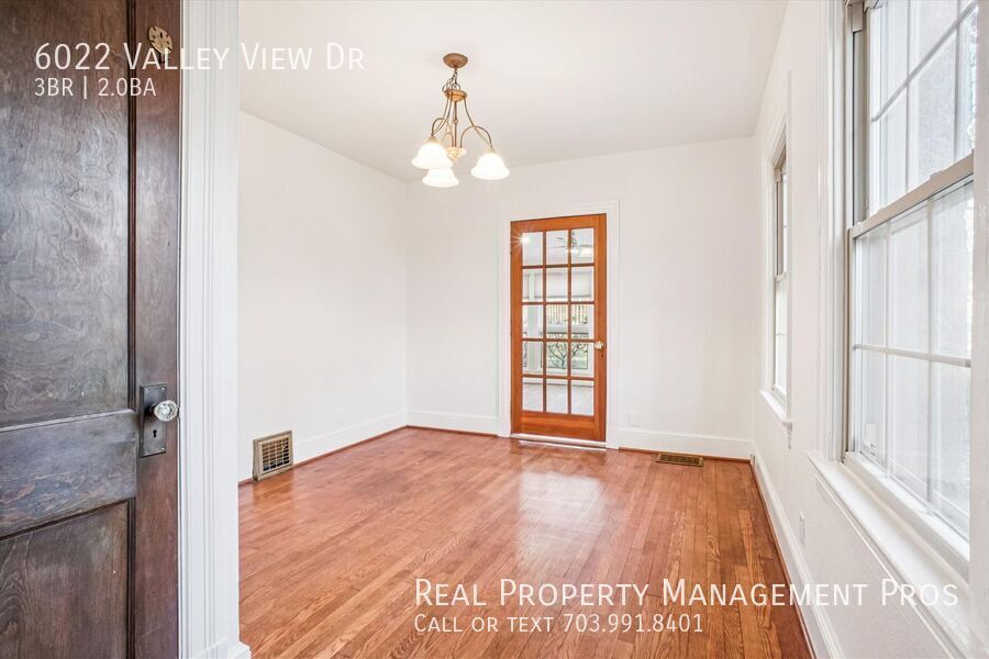 Welcome home to 6022 Valley View Dr, a charming retreat tucked into a quiet neighborhood surrounded by trees—yet so close to everything you need. From the moment you pull into the driveway, you’ll fall in love with how peaceful it feels here, while still being minutes to the everyday conveniences that make life easy. Out front, the massive covered porch is the kind of space you’ll actually use. Picture fall s’mores with friends, a cozy morning coffee, or sipping a cold drink in the shade during the summer—this porch was made for memory-making. Inside, the updated kitchen shines with luxury countertops and a perfectly placed spot for a breakfast nook—ideal for kids to finish homework before heading out the door, or for you to enjoy coffee before work. The living space is huge, with original wood floors and plenty of room for hosting friends, spreading out, or settling in for movie night. The dining room is perfectly positioned off the kitchen, making it a natural place to entertain—think supper club nights, holiday meals, and easy everyday dinners. The highlight of the main level is the brand-new primary suite, complete with a spa-like bathroom, a brand-new washer and dryer, and a walk-in closet —a true everyday luxury that makes this home stand out. Upstairs, you’ll find two bedrooms with quaint charm (and closet space any shoe-lover will appreciate), plus an updated bathroom—your guests truly won’t want to leave. Need storage? You’ve got it. The lower level offers plenty of space for all those off-season décor bins and extras, and you’ll never run out of room thanks to the massive storage barn right outside—perfect for bikes, strollers, tools, lawn equipment, and everything in between. Even with the peaceful setting, the location is a major perk. You’re a short drive to Metro access at Franconia–Springfield (Blue Line) and Van Dorn Street, making commuting into DC and around the region very convenient. You’re also close to major military hubs including Fort Belvoir, the Pentagon, and Joint Base Myer–Henderson Hall. For day-to-day life, Manchester Lakes is nearby for easy shopping and dining, including HomeSense, Firebirds Wood Fired Grill, and First Watch, with even more options at Kingstowne Towne Center. When it’s time for a grocery run, Wegmans at Hilltop Village Center is close by. Plus, Inova’s new Franconia–Springfield hospital campus is underway nearby, adding even more convenience to the area. $0 Security Deposit Option for Qualified Residents! See resident brochure or property manager website for more details. -------------------------------------------------------- Resident Benefits Package is Required with ALL lease agreements managed by Real Property Management Pros. The Real Property Management Pros Resident Benefits Package (RBP) delivers savings and convenient, professional services that make taking care of your home second nature. By applying, Applicant(s) agree to be enrolled and to pay the applicable monthly TOTAL cost of $45.95 per household. Your RBP may include, subject to property mechanicals or other limitations: - Renters Insurance that meets all lease requirements from an A-rated carrier - HVAC air filter delivery directly to your door approximately every 90 days. - Move-in concierge service: one call set up your utility services, cable, and internet services - A resident rewards program that helps you earn rewards for paying your rent on time. - Credit building to help boost your credit score with timely rent payments. - $1M Identity Protection for all adult leaseholders - 24/7 online maintenance reporting - Home buying assistance for when the time is right to buy your “forever” home. - Online portal: Access to your account, documents, communication and payment options. - Vetted vendor network: we find the technicians who are reputable, licensed, and insured. NOTE: The total monthly cost of the Resident Benefits Package is all-inclusive, and no discounts will be given if any element of the package is unavailable due to a lack of HVAC or another limitation at a specific property. See resident brochure or property manager website for more details. -------------------------------------------------------- Pet-Friendly Pet Policy This home is pet-friendly and will accept a maximum of 2 pets that are at least 1-year old. You will need to complete an online pet profile and pay a non-refundable pet application fee of $20 per pet if paid by ACH (or $25 if paid by credit card). If your pet is approved, you will need to pay a non-refundable pet fee of $350 per pet plus a monthly pet administration fee of $30 per pet. Real Property Management Pros does accept assistant animals per state and federal guidelines. If you have an assistance animal, you must still complete an online animal profile. There is no application fee for this process. None Single Family Home