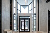 This stunning modern one-bedroom offers a perfect blend of style and functionality. Designed with ample storage, it features double bedroom closets, a linen closet, and a coat closet. The sleek open kitchen maximizes space with two-tone cabinetry, custom marbled Quartz countertops with a striking waterfall edge, and natural oak hardwood floors. A full suite of GE Profile appliances, including a fully vented range hood, completes the contemporary design. The spa-like bathroom exudes elegance with a floating white lacquer vanity, an LED-lit mirror, and luxe finishes. Enjoy the convenience of an in-unit full-size Whirlpool washer and gas dryer. Residents also have access to a private garage with assigned parking for $175 per month, a gorgeous lobby, a spacious fitness center, and a welcoming lounge.