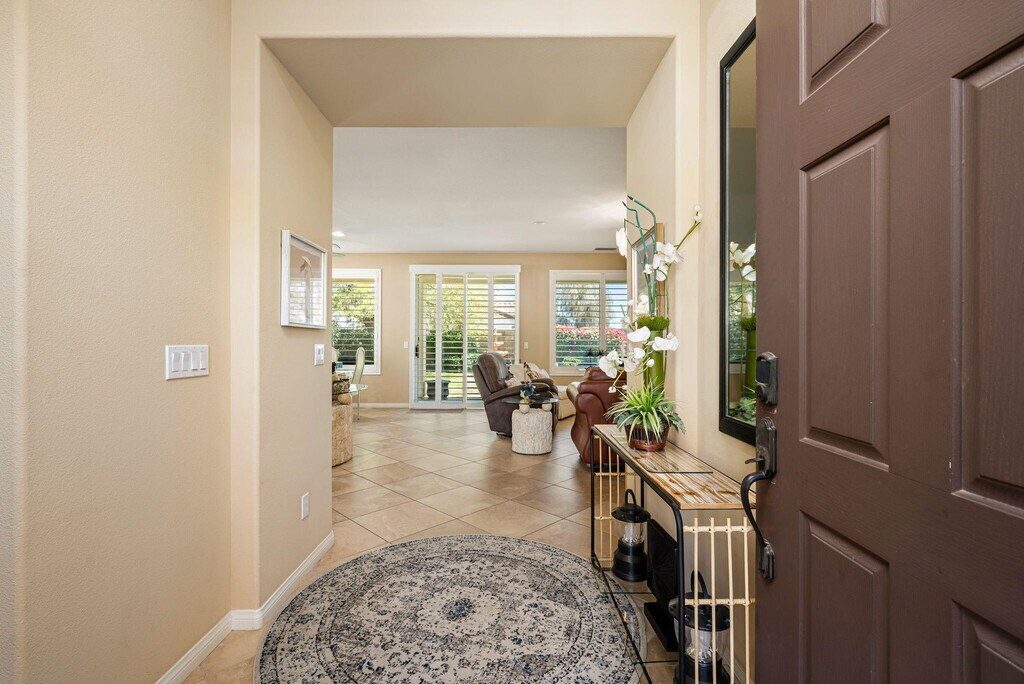 This long-term furnished Marea plan blends comfort and sophistication just minutes from the Santa Rosa Clubhouse and its full suite of resort-style amenities. Offering 2 bedrooms and 2 bathrooms across 1,359 sq. ft. of polished interior living,the home welcomes you with an inviting great room featuring a custom TV/media niche and a charming tile-framed fireplace. Plantation shutters elevate every space,while the adjacent kitchen shines with stainless steel appliances,granite countertops,a breakfast bar,gas range,built-in microwave,and a convenient pantry. The guest quarters include a well-appointed bath with a shower-over-tub layout,while the primary retreat impresses with plank flooring,a French door to the patio,and an en suite showcasing a generous tiled shower,dual vanities,and a spacious walk-in closet. Outside,a tranquil backyard oasis awaits with a covered patio and lush,professionally designed landscaping--perfect for peaceful relaxation or effortless entertaining. Available on an annual basis. This is not a vacation or short-term rental. MLS # 219146399