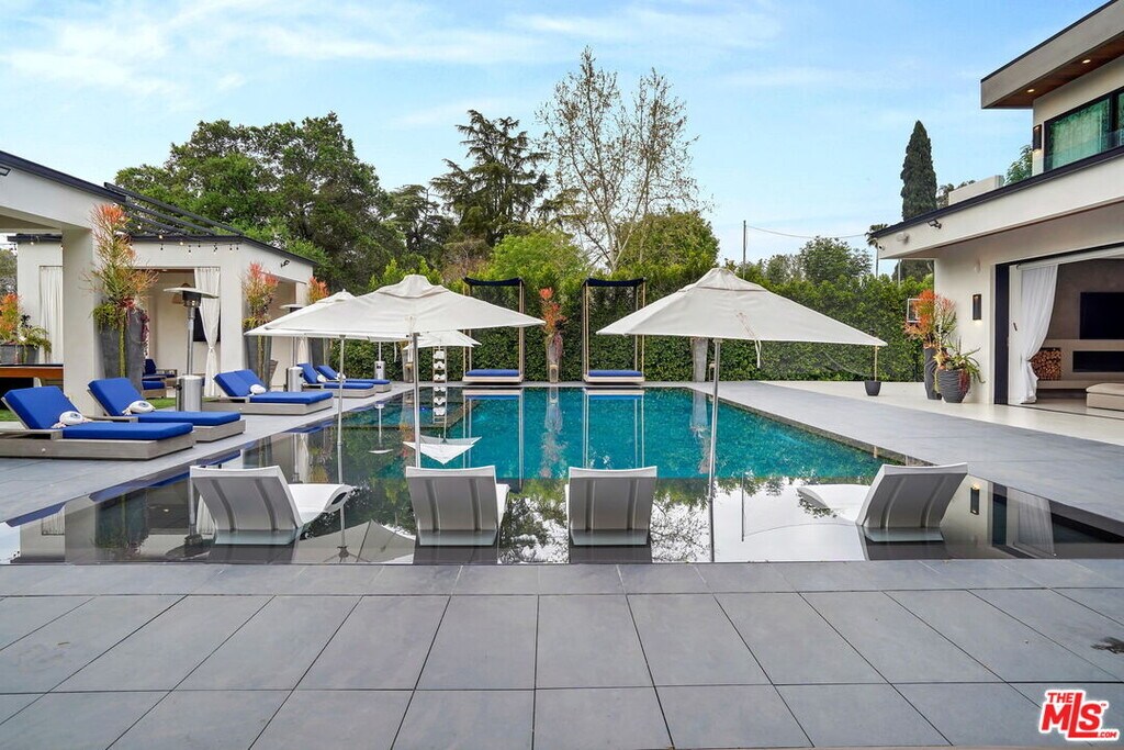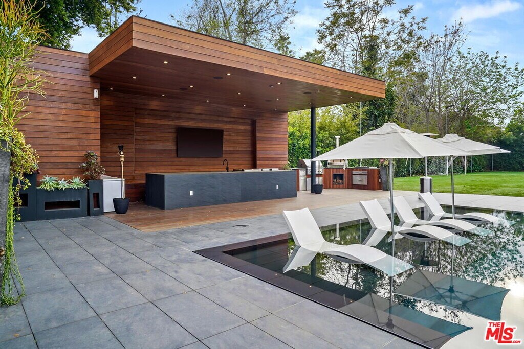 Experience Resort-Style Living in the Heart of TarzanaDiscover modern California luxury in this breathtaking 5-bedroom, 6-bath architectural estate, quietly tucked away in Tarzana's serene hills. Designed for seamless indoor-outdoor living, the home captures natural light at every turn and pairs clean, contemporary design with warm, livable sophistication.Step into your own private resort. Lounge beside the infinity-edge pool, unwind in the cabana, or gather by the fire features as the sun sets. Entertain effortlessly with a custom outdoor kitchen and wood-fired pizza ovenperfect for hosting unforgettable evenings with family and friends.For recreation and relaxation alike, enjoy your own personal soccer field and a state-of-the-art home theater designed for the ultimate cinematic experience. Behind the gates, this sanctuary offers complete privacy while remaining just minutes from Ventura Boulevard's top dining, shopping, and entertainment. A rare blend of elegance, comfort, and lifestyle. This is California living at its finest. MLS# 25611579